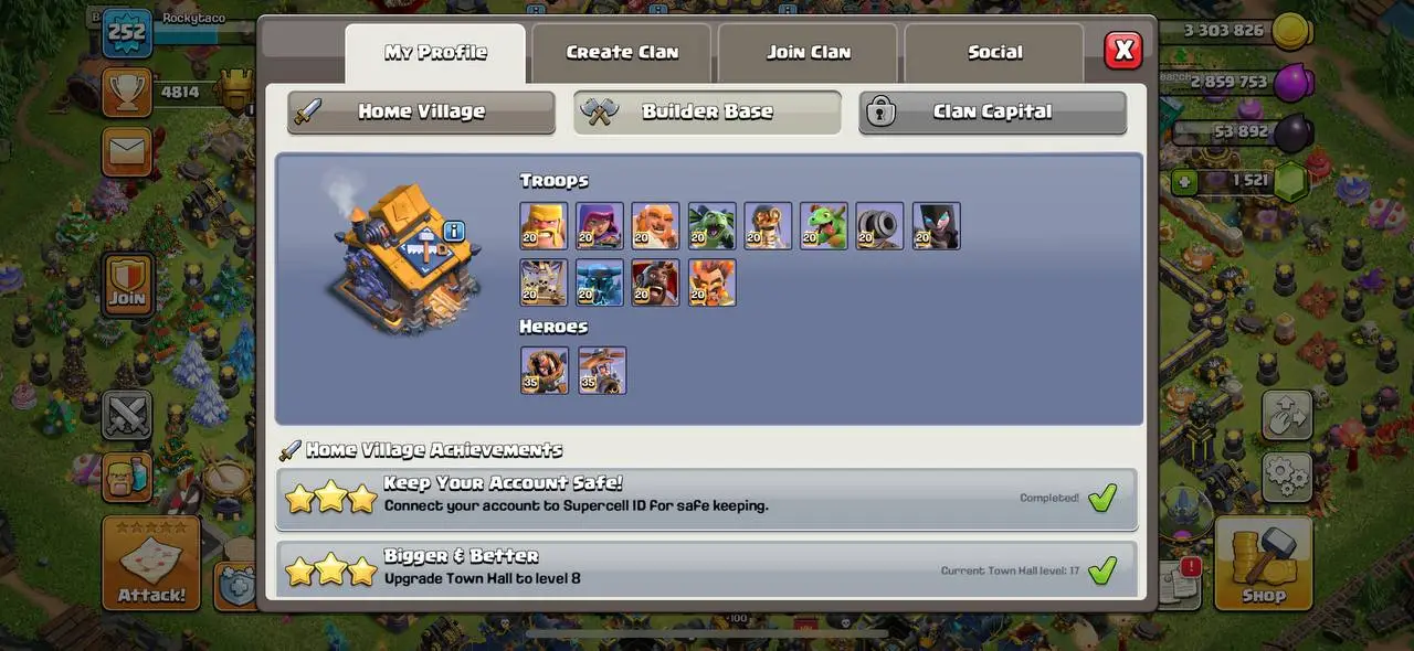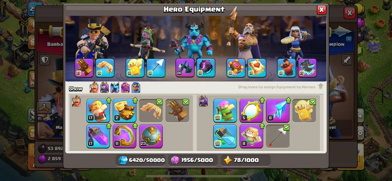 ALL trees 🔥 2012-2024 Cheap available TH17 MAX 5 heros max 74 heros skins 6 SCENARIES profile Max epic equipments CANADA LOCAL 🔥 RAREST ACCOUNT EVER IN CLASH OF CLANS 🌟