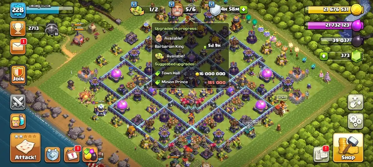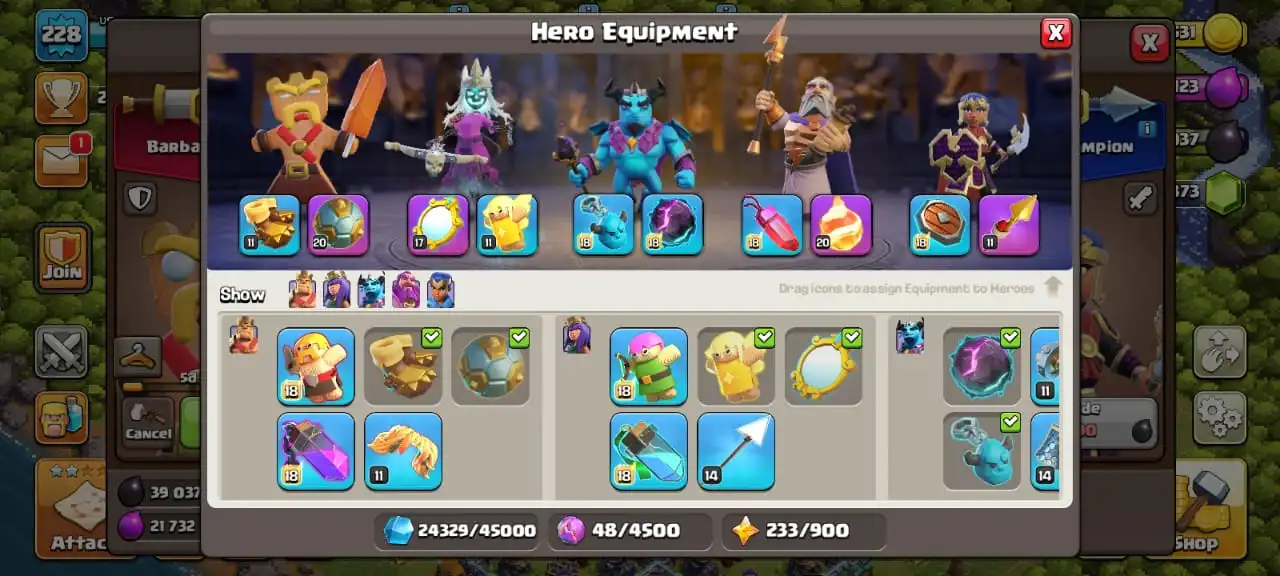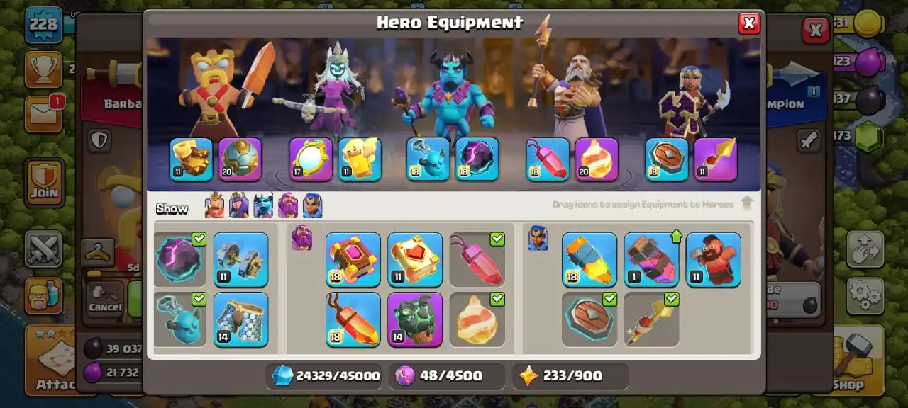 Best deal🔥TH 15 max🔥max heroes level 89/90/65/65/40⚒️max builder base☠️5 epic equipment⚒️all helper opened✅pixel scenery and 11 heroes skin