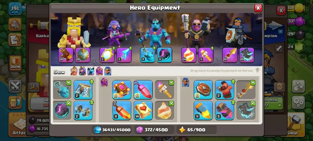 Big sale🔥TH 15 max defense🔥high heroes level 90/90/54/62/36☠️8 epic equipment✅free name change✅7 heroes skin