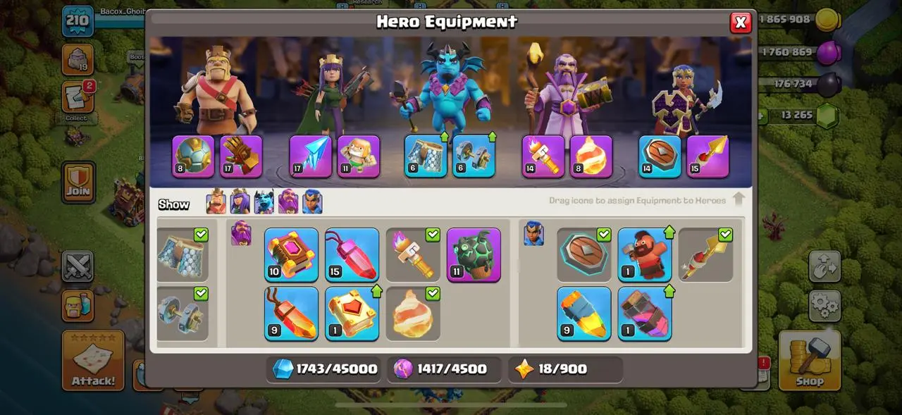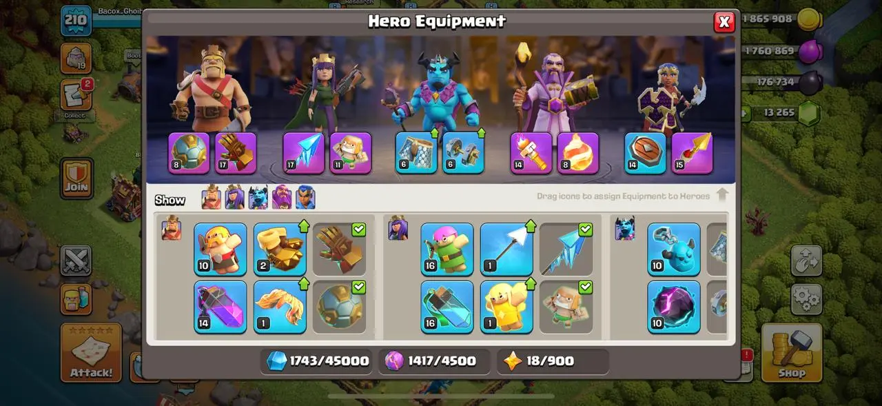 big sale🔥Town hall 15 strong defense🔥13.265 gems🔥830 points League shop🔥8 epic equipment🔥cheapets🔥6 builders⚒️