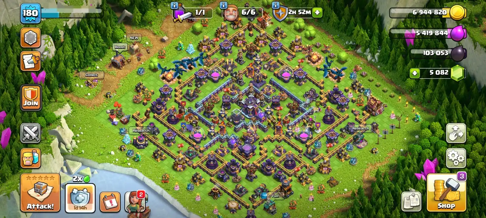 cheapest🔥th 15 all most max🔥gems 5082🔥heroes 81-82-50-57-40🔥scenery 4🔥magic items ready🔥full access account🔥