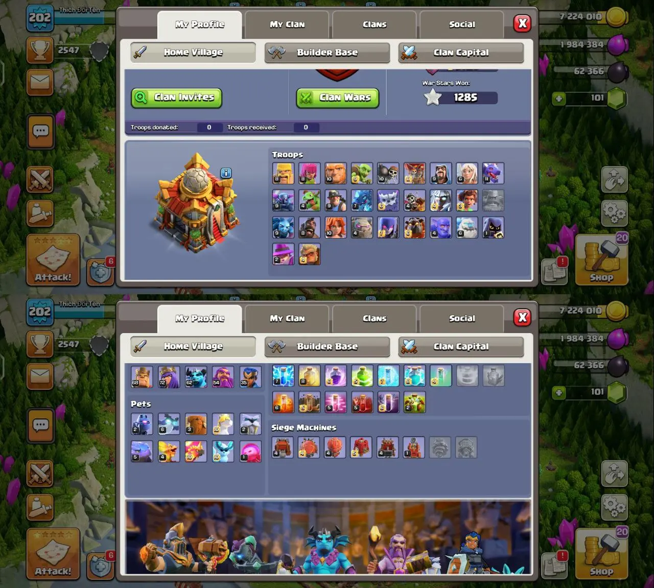 🔥EXCLUSIVE FB-GG-FA EPIC MAXED TH16⚡HEROS:-68/72/62/54/35⚡ PURPLE AND MAX LEVEL WALLS⚡DECENT MAX PROFILE⚡CHECK PHOTOS⚡INSTANT DELIVERY⚡