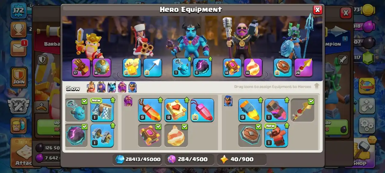 Flash sale🔥TH 16 ex th 15 MAX🔥heroes level 77/81/40/57/37☠️4 epic equipment✅cn on✅snow day scenery and 8 heroes skin
