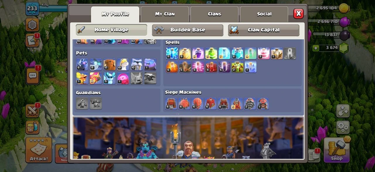 ⭕️ HERO MAX ⭕️WALLS & DEFENCE MAX 🛑READY TH18 ⭕️TH 17 🛑 9 EPIC EQUIPMENTS🛑 OG SKINS ⭕️ HEROES 93-96-73-69-43🛑 233 XP LVL 🛑 OP MAGIC ITEMS 🛑 1000 GEMS RENAME 🛑OP HEROES SKIN 🛑 WAR STAR 🛑 SUPER FAST INSTANT DELIVERY