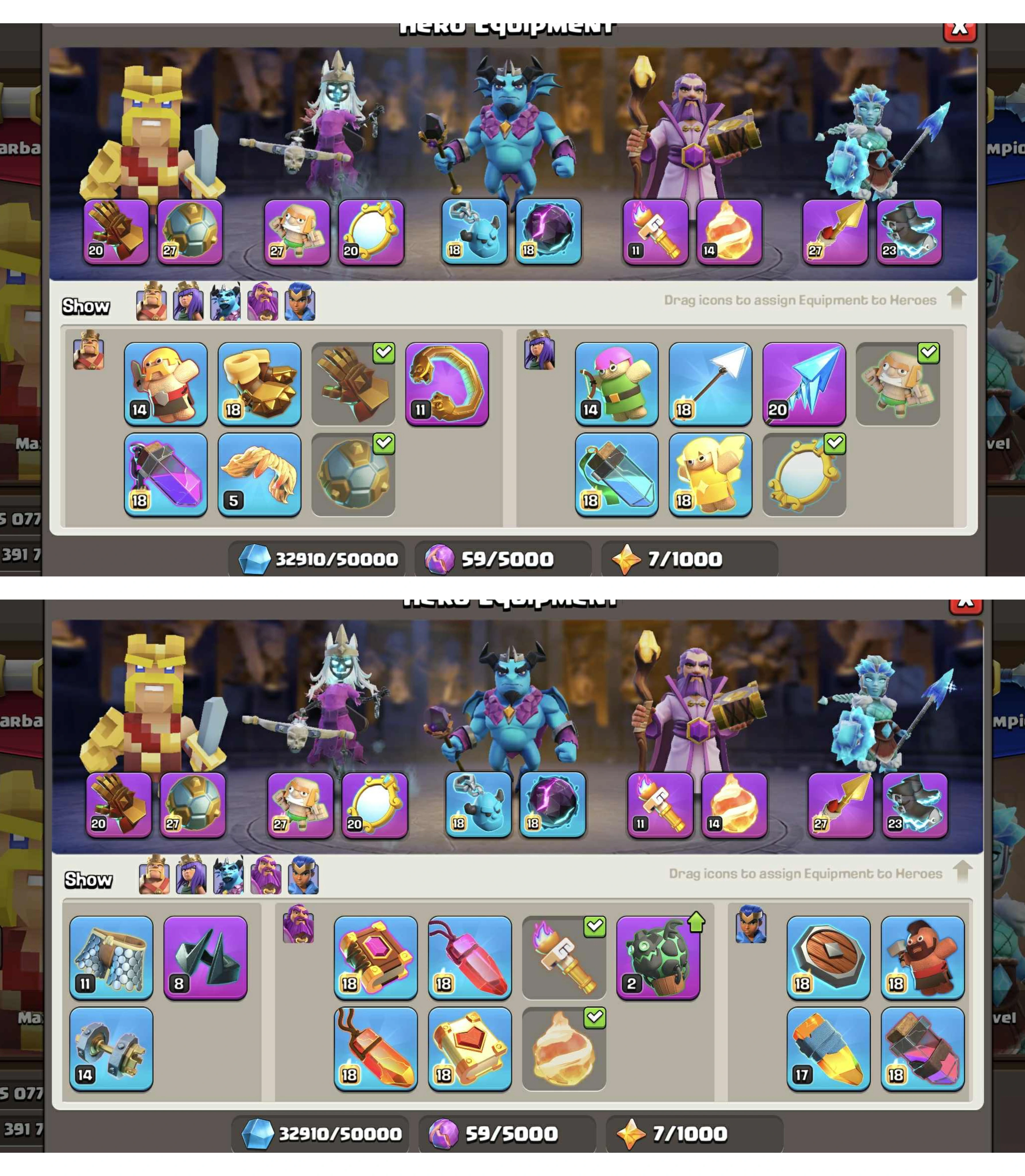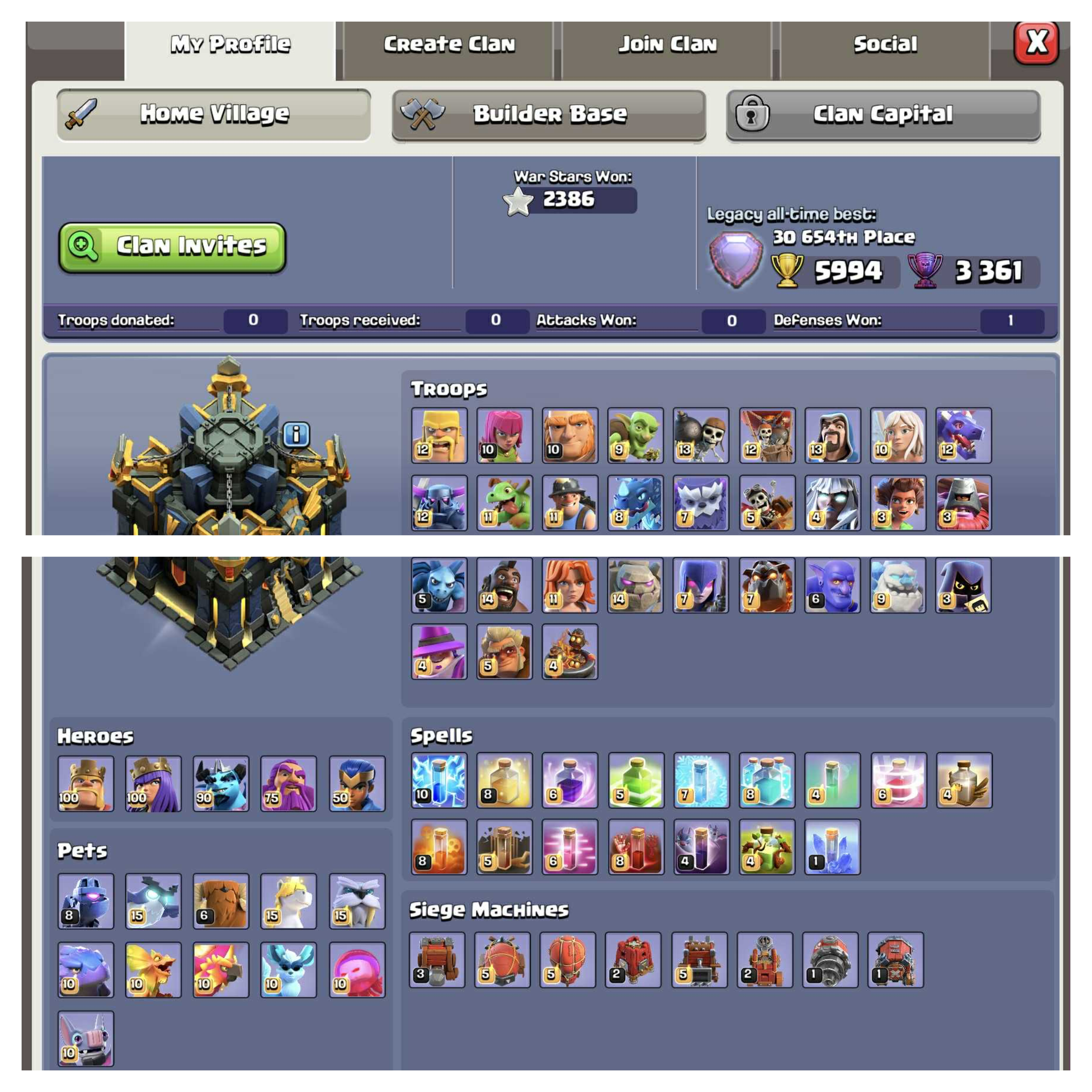 Level 235🌷TH 17 Max Almost🌷13k Gems🌷3 Epic Equipments Max🌷5 Heroes Max
