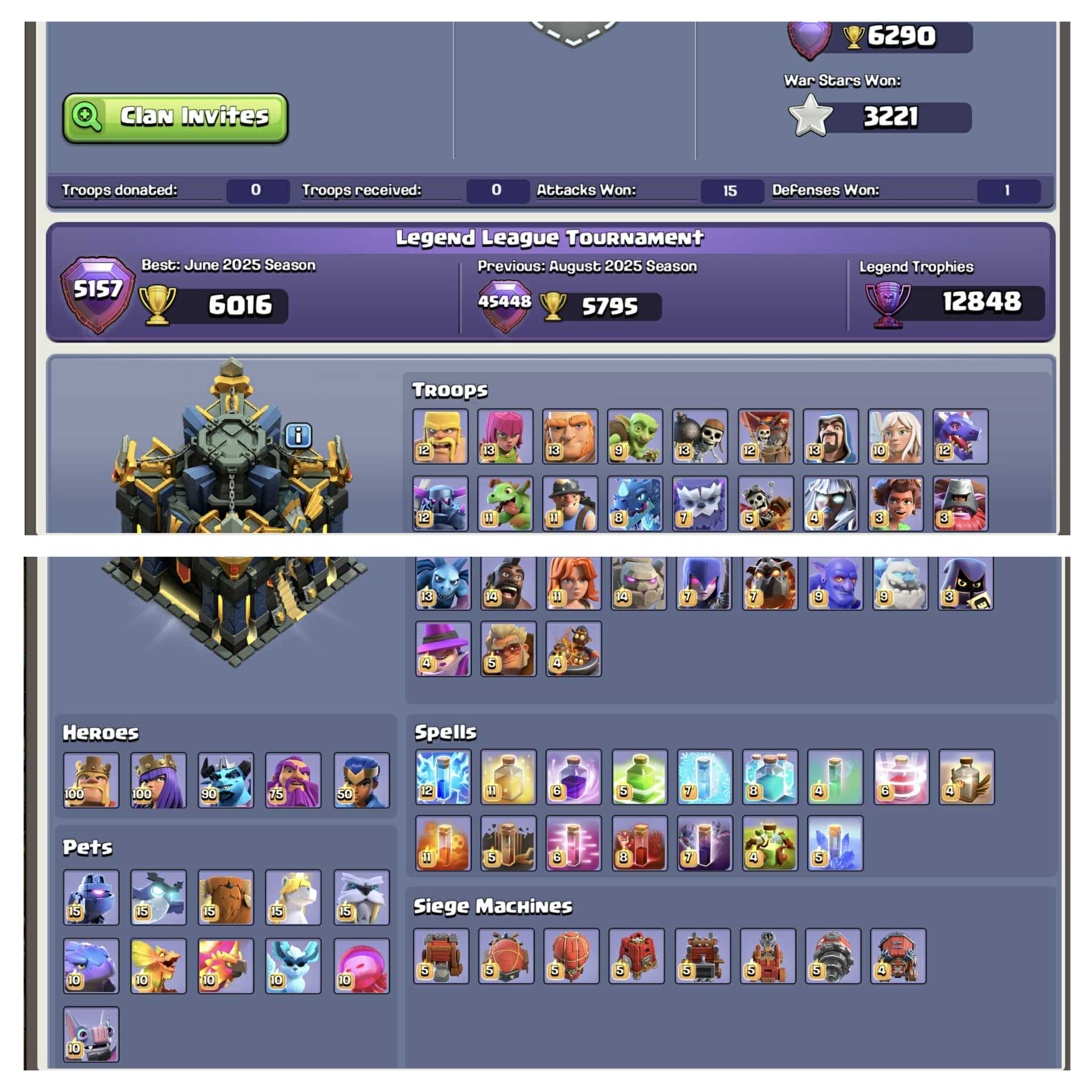 Level 266🌷TH 17 Maxed 100%🌷Rare 11 Epic Equipments Maxed🌷Builder Base Max
