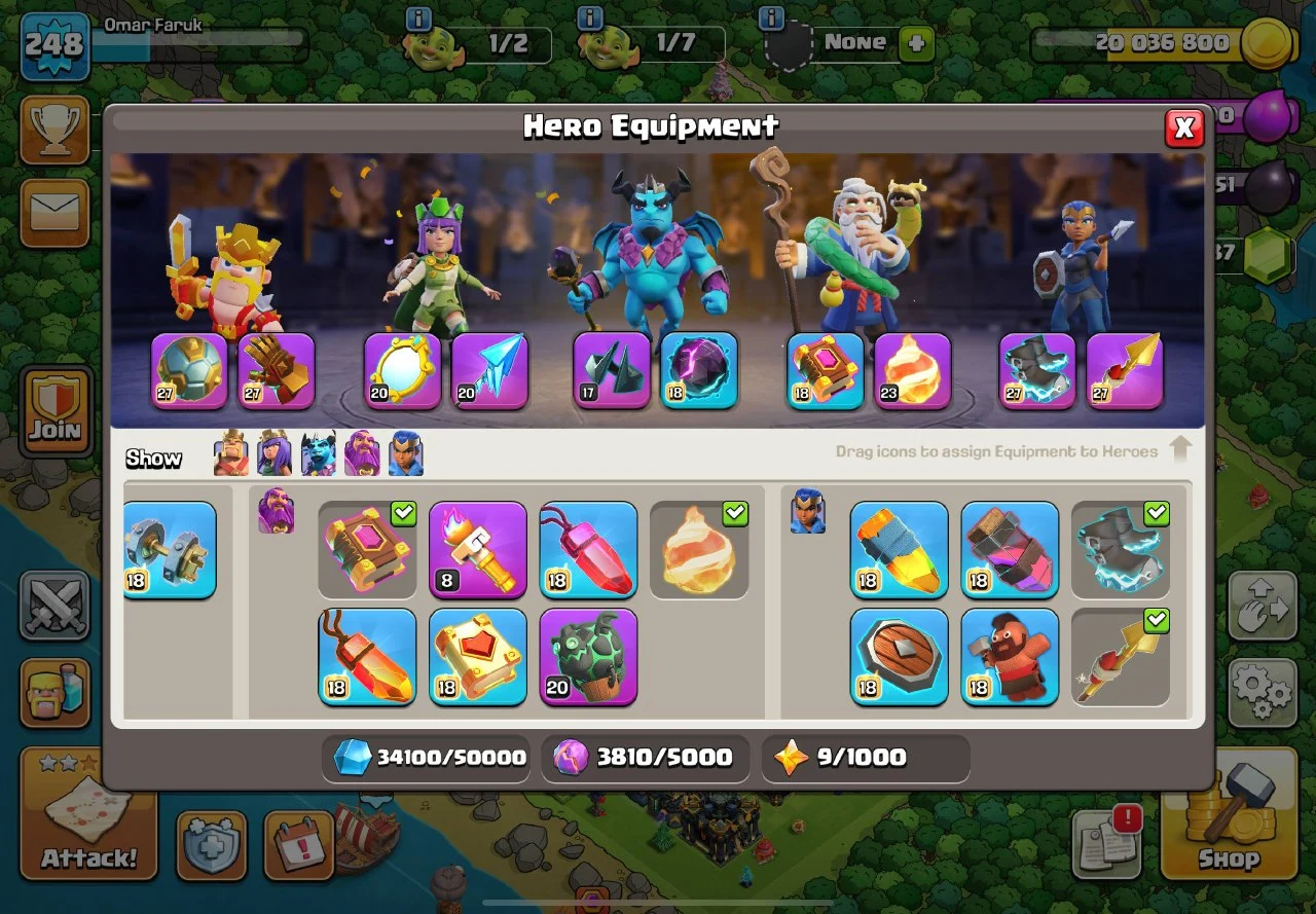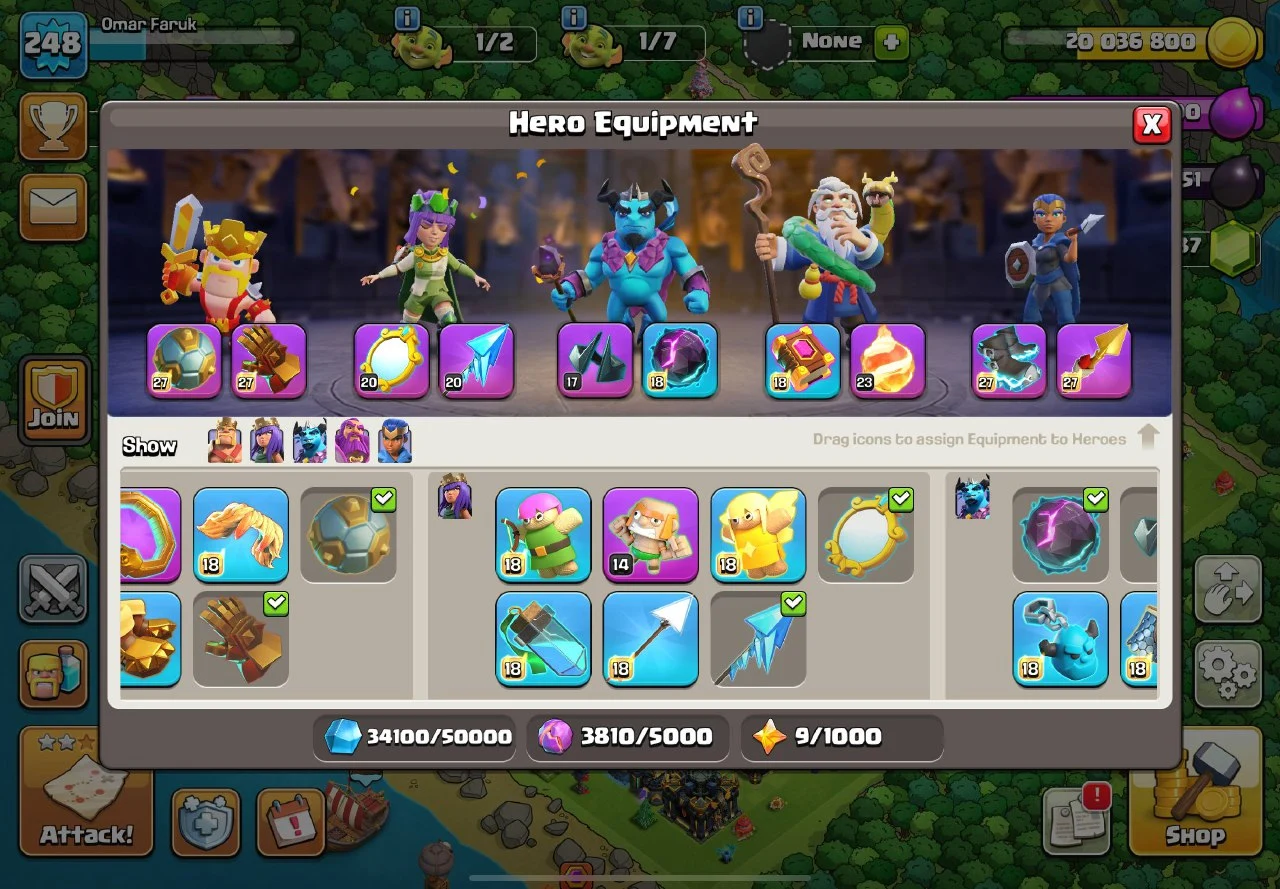 🔥RARE 25 MAXED EQUIPMENT🔥FULLY MAXED TH 17🍀MAX HEROES-DEFENCE🍀2.5k GEMS💢402 CWL MEDAL💢3.5k WS🍀FULL MAGIC ITEMS🍀BA MAXED‼️COOL SKINS‼️INSTANT ACCESS