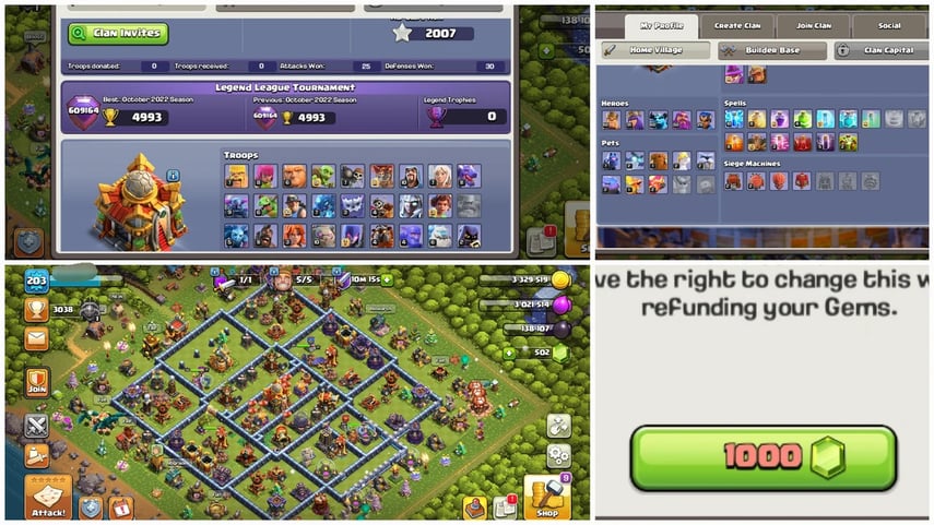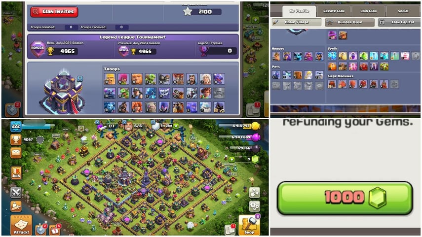 🔥 RARE ⸱ 588 GLOBAL RANK ☠️ FULL MAX TH 16 😈 only some walls left ⚡️ 13.2k+ LEGEND TROPHIES 🏆 41+ SKINS 🥵 4+ LEGENDARY SKINS 🔥 9th & 10th CLASH IVERSARY SCENERY 🥹 1351 CWL MEDALS 🎖️ 3127 RAID MEDALS 🥇 FREE NAME CHANGE 💎 OP STACKED ACCOUNT ☠️ V123 💫