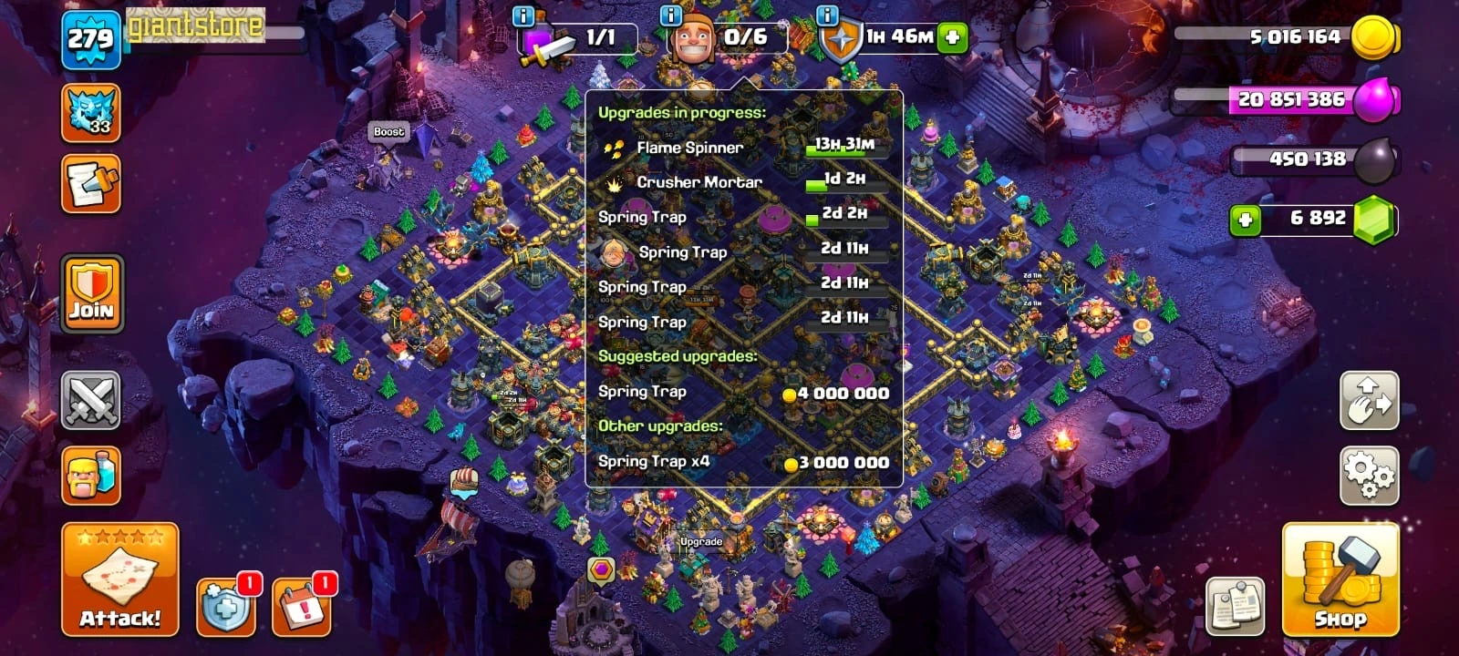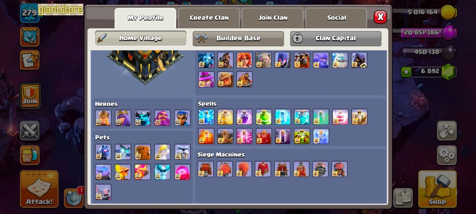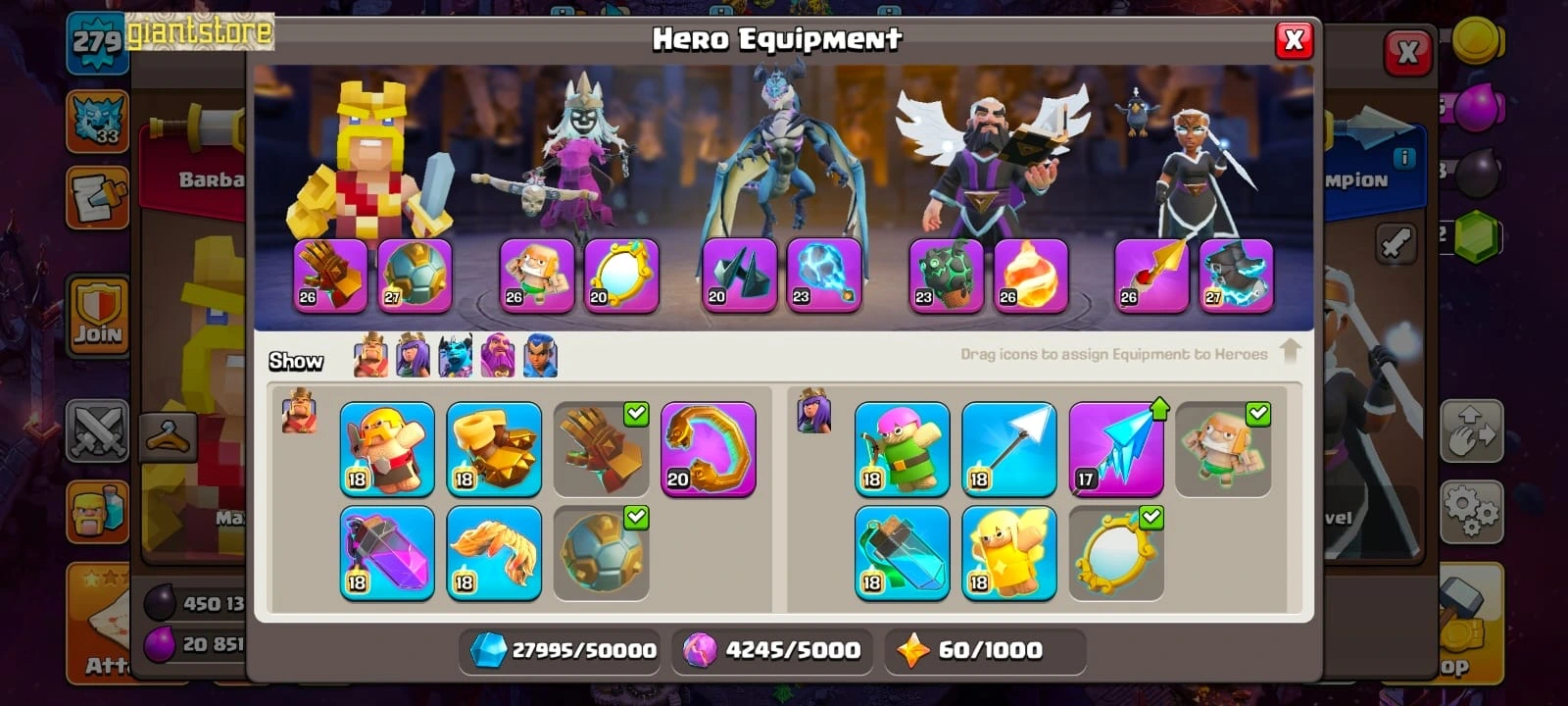 RARE🔥 TH 17 ALL MAX 🔥full equipment 33/33⚡️all supercharge⚒️max builder base🔥max troops🔥max heroes🔥max pets✅cn on