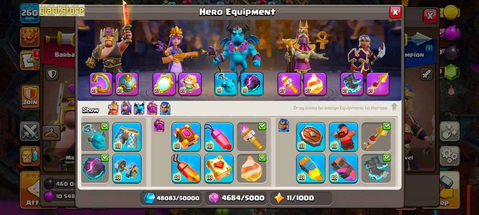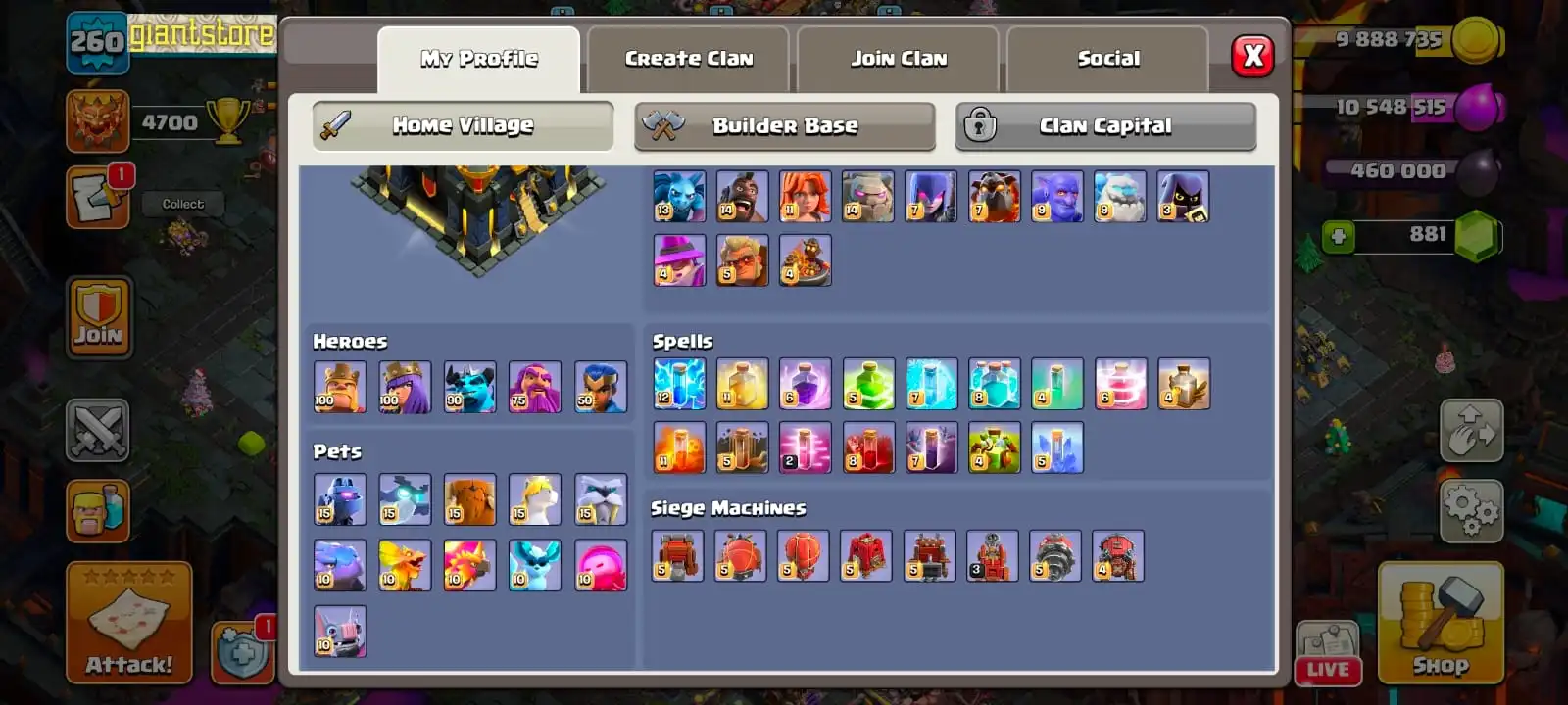 RARE☠️8 MAX EPIC EQUIPMENT🔥 TH 17 MAX 🔥max heroes🔥max pets🔥max troops⚡️all supercharge defense✅2 scenery and 25 heroes skin