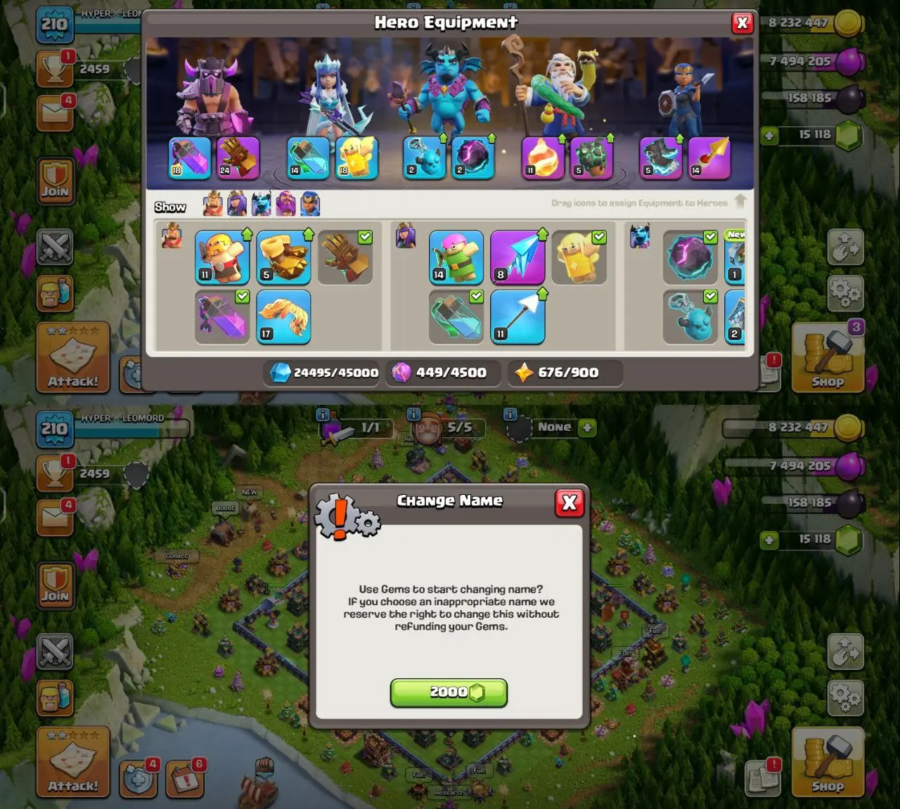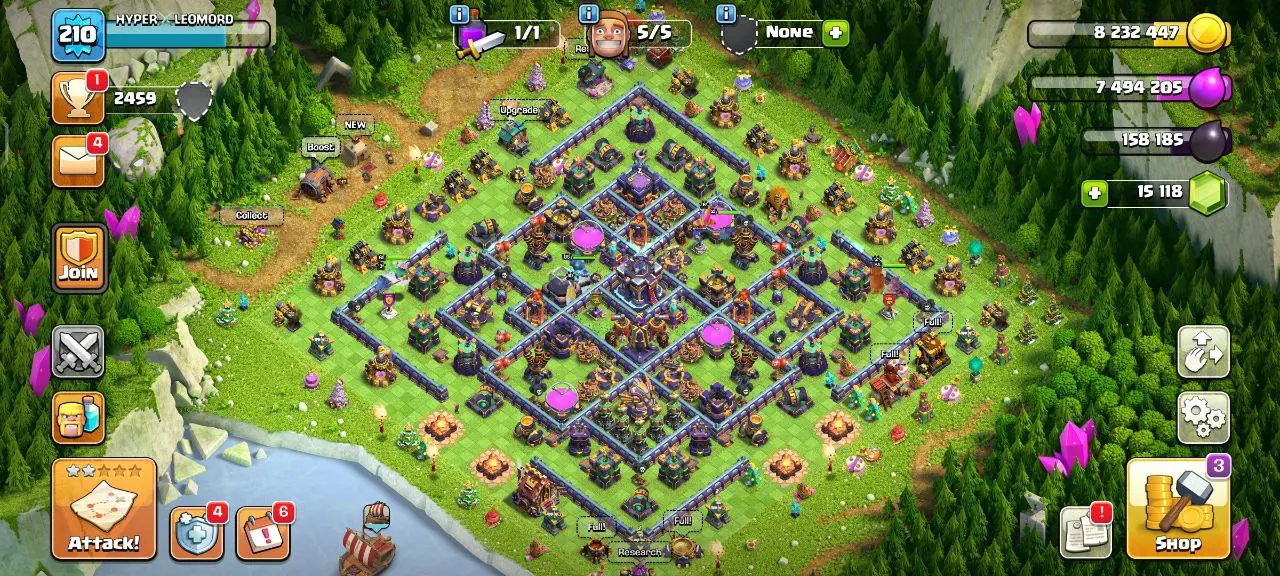 🔥RAREST 15100 GEMS TH15⚡HEROS:-85/85/52/61/34⚡ALL EQUIPMENT HIGH LEVEL⚡FULL PURPLE WALLS⚡NAME CHANGEABLE⚡CHECK PHOTOS⚡INSTANT DELIVERY⚡