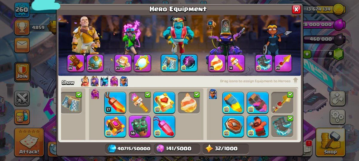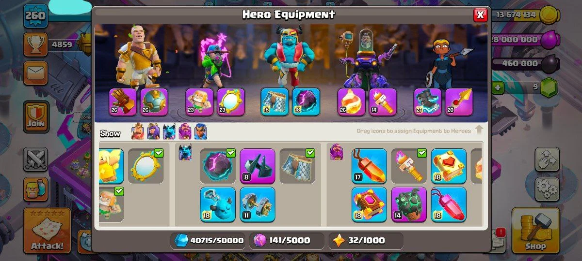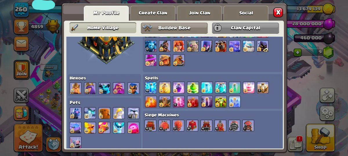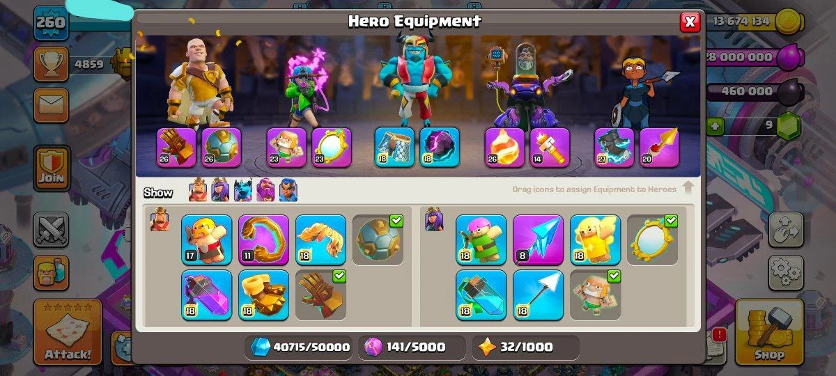 💥[RAREST] ☃️ SKINS AND SCENARY STACKED ❗️ TH 17 MAX TYPE💥 👿 LEGENDRY SKIN 👿 | MAX HEROES🥶 | ☃️ ALL EPIC EQUIPMENTS ☃️| ✨️ 6 EPIC MAX TYPE ✨️ | 🎊 747 CWL MEDALS 🎊 |👑 20 SKINS 👑 SUPERCHARGED DEFENCES❗️