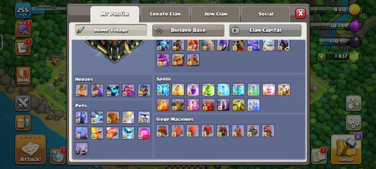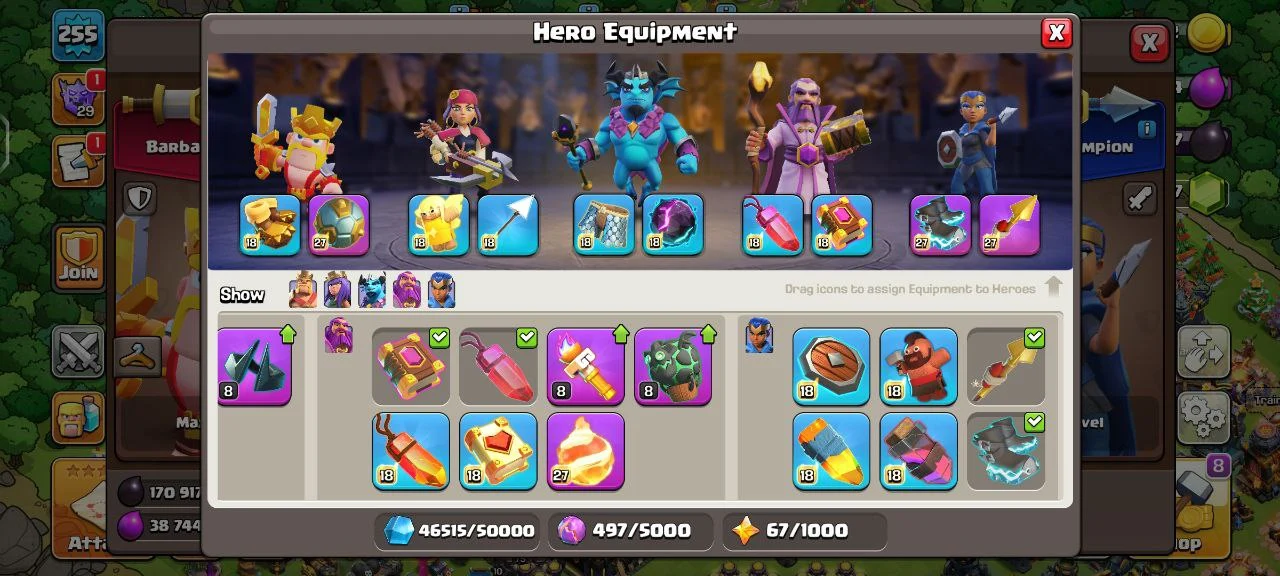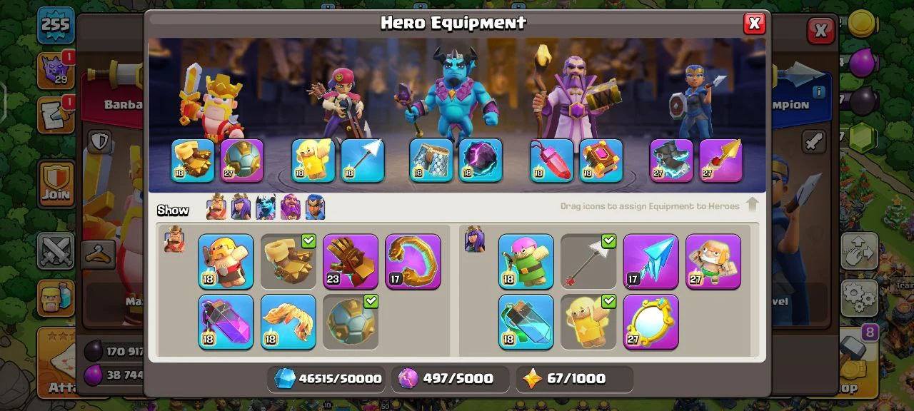 SUPER SQUAD KING 💯 TH 17 MAX TYPE 💯 4 HEROES MAXED 💯 24 MAX EQUIPMENTS 💯 HERO SKINS 💯 SUPERCHARGE LEFT 💯 10 MAX PETS 💯 INSTANT EMAIL PASS ACCESS 💯 CC23
