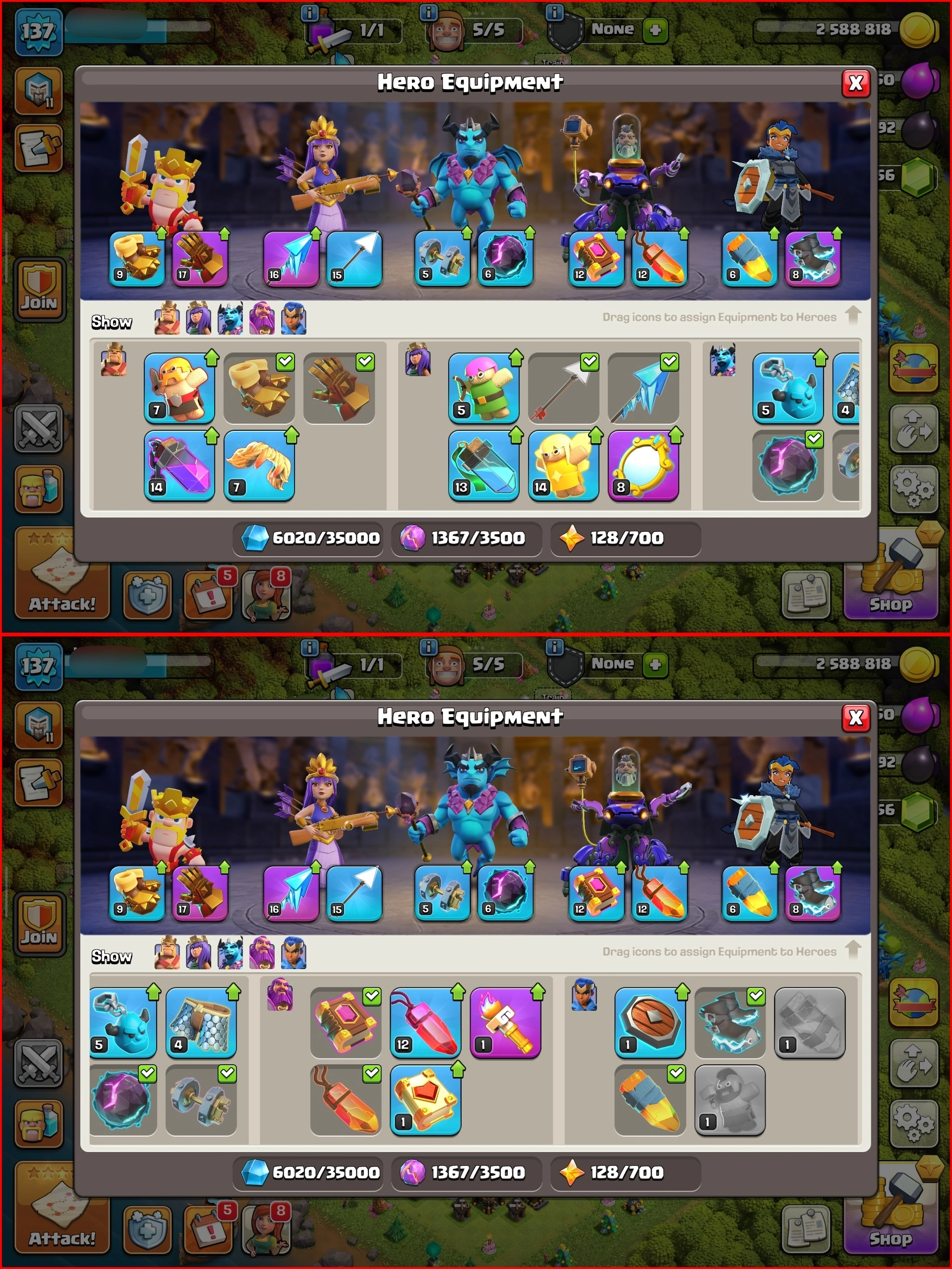 SUPERB TH13 NEARMAX I'D w/ MAX CORE DEFENSES & WALLS | 68/69/41/41/15 | Bonny Skins & Hefty Equipments | Piled Magic Items & Beefy BH8 | 500 NC | RB439