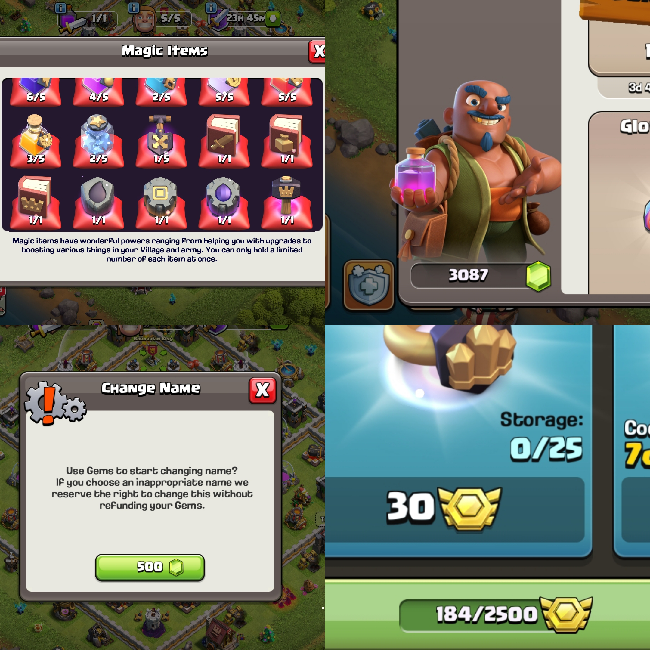 ⭐ TH 11 ⭐ FULL MAX 100% ⭐ 3K GEMS ⭐ 4 EPIC EQUIPMENT ⭐ NAMECHANGE AVALIABLE ⭐ MAGIC ITEMS ⭐ 180 CWL MEDALS
