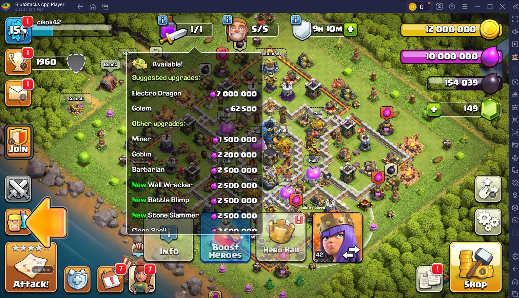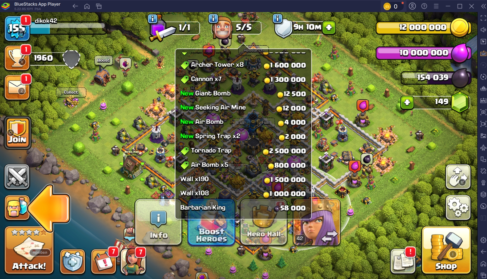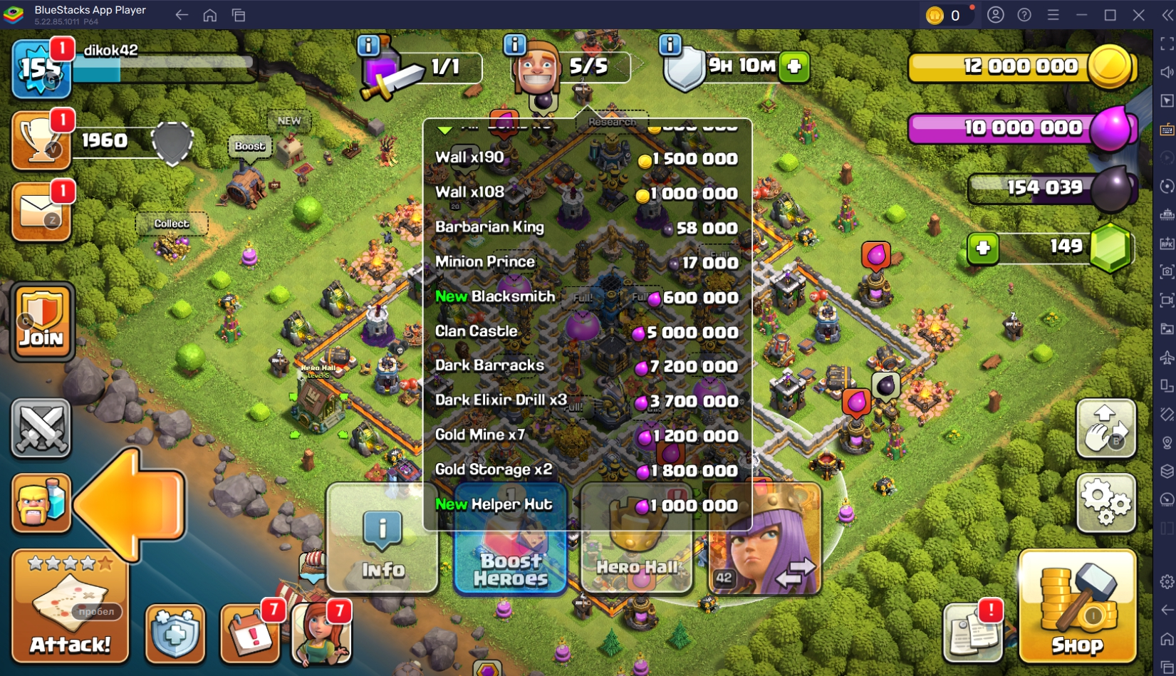 TH 12 💯 155 LEVEL ❤️ 40-42-20-20-0 HEROES 🐼 5/5 BUILDERS ✅ 1960 TROPHIES 🏆 #LRJ8VC0RJ TAG ACCOUNTS 💯