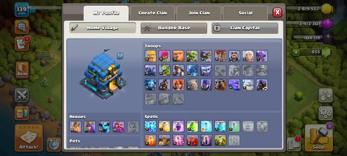 TH 12 ALL MOST MAX🔥MENDALS 472🔥HEROES 60-63-40-38 GIANT GAUNTLET & FROZEN ARROW ON🔥MAGIC ITEMS READY🔥READY CHANGE NAME🔥FULL ACCESS & GUARANTEED🔥
