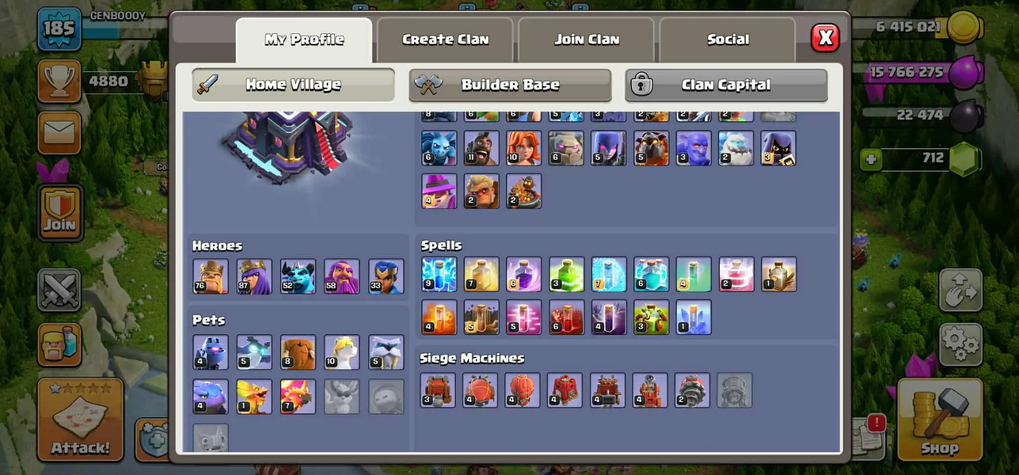TH 15 Max♦️ Quuen League skin+8 Legendary Skin♦️ 10 Epic Near Max♦️ Nc 500♦️ 6 Th builder♦️ Heroes 76-87-52-58-33♦️ Stack magic items♦️ Skins for all 5 heroes♦️