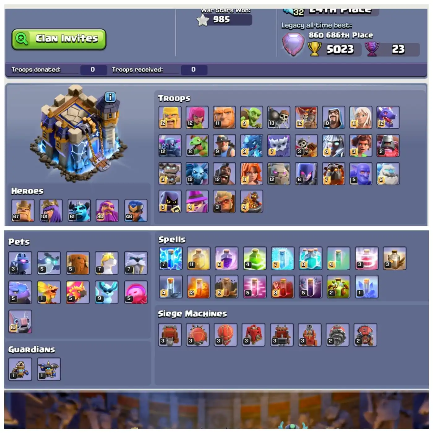 TH 18 🧿 XP 222 🧿 Crazy Stacked Old ClashTrees 🧿 Walls Defenses Laboratory Mostly Maxed 🧿 12 Epic Equipments 🧿 Fully Stacked 🧿 Instant Delivery
