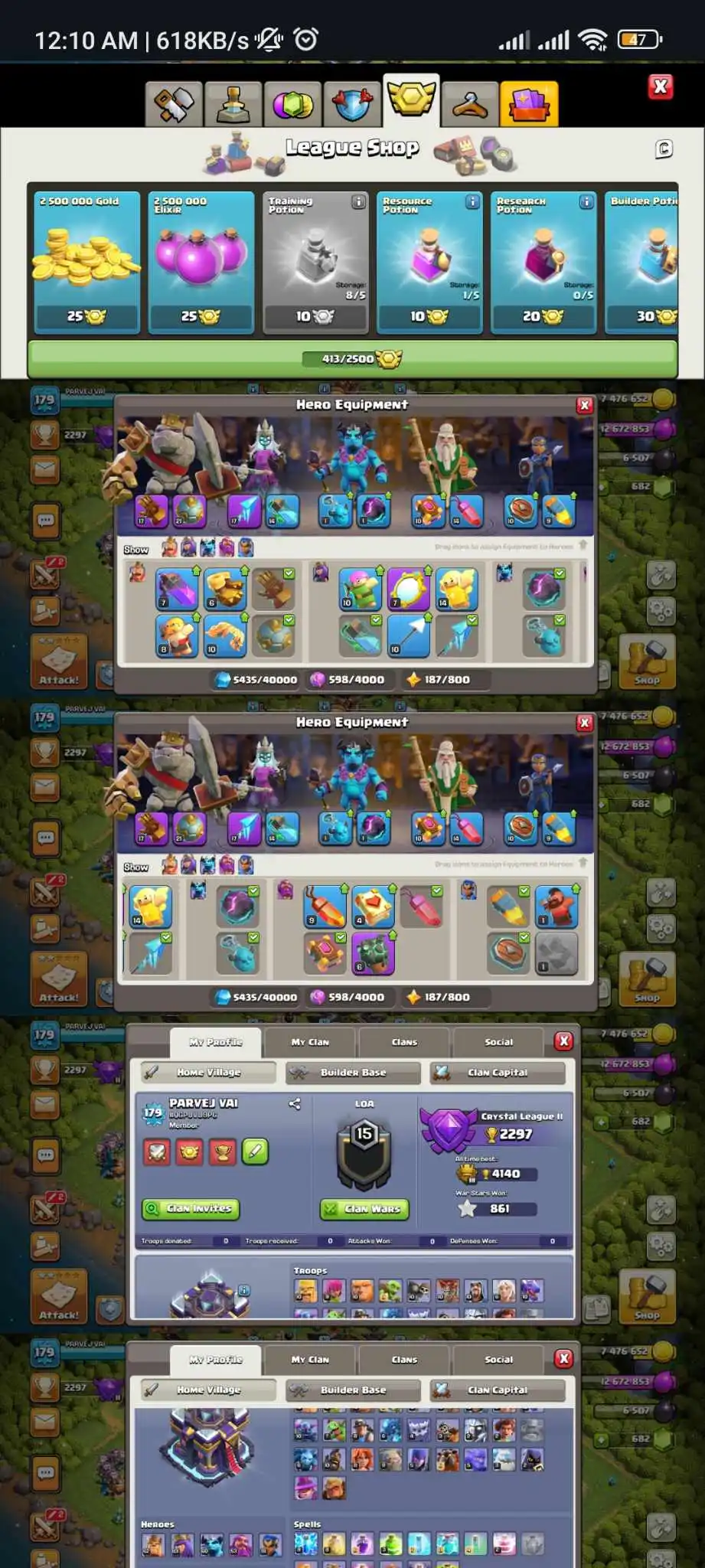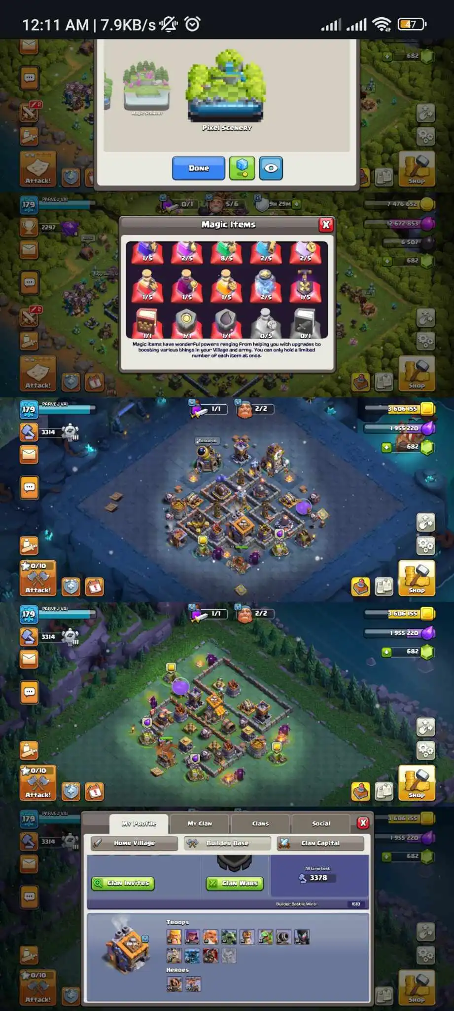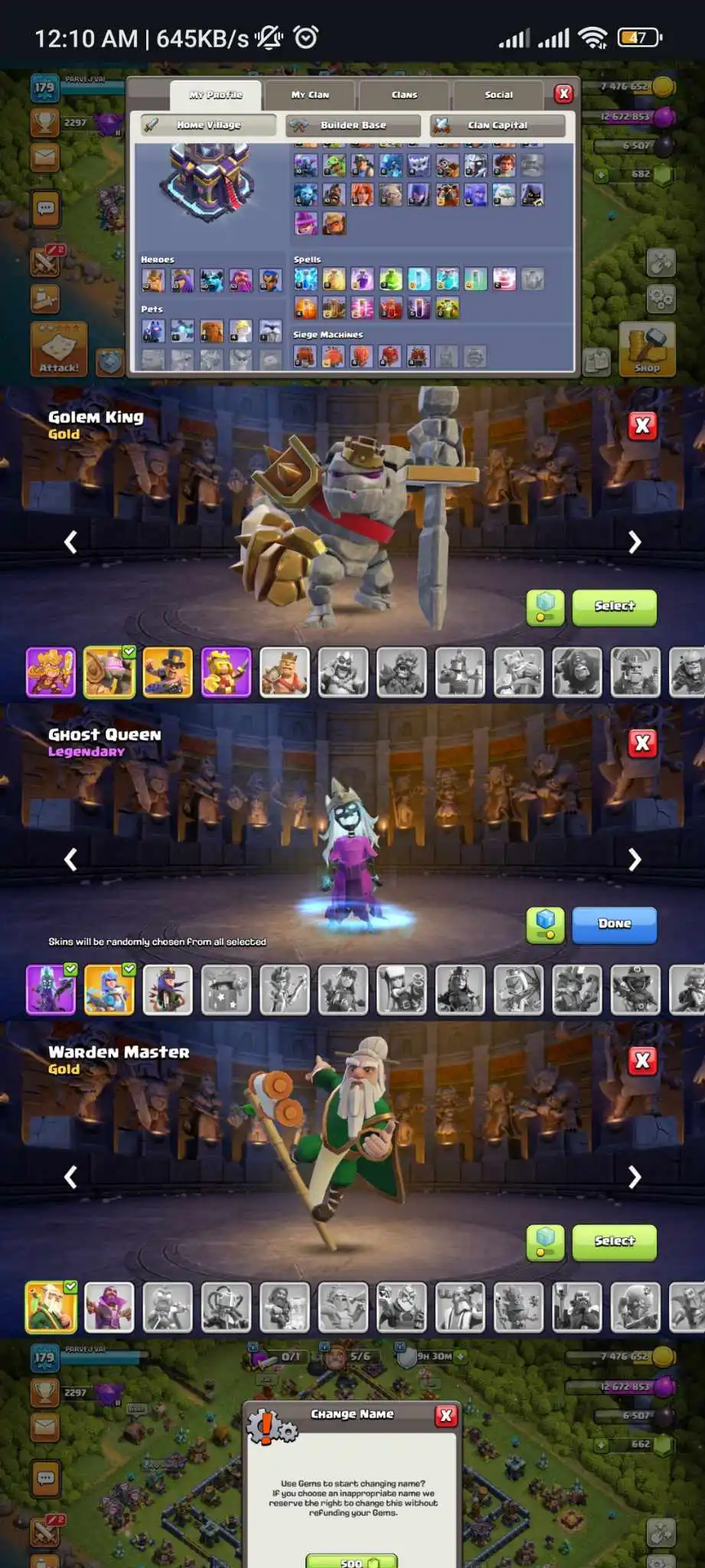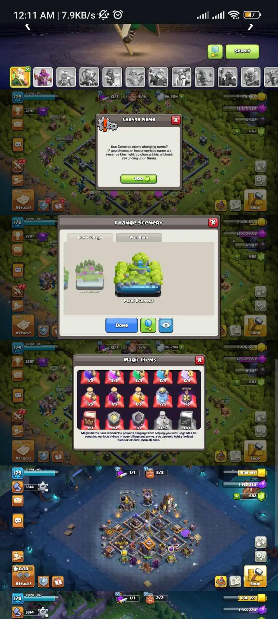 TH15 MAX ID | HERO'S: 62-83-60-53-18 | 5x EPIC EQUIPMENT | GOLDEN WALL | 400+ CWL MEDEL | XP- 179 | 7 SKIN | PIXEL SCENERY