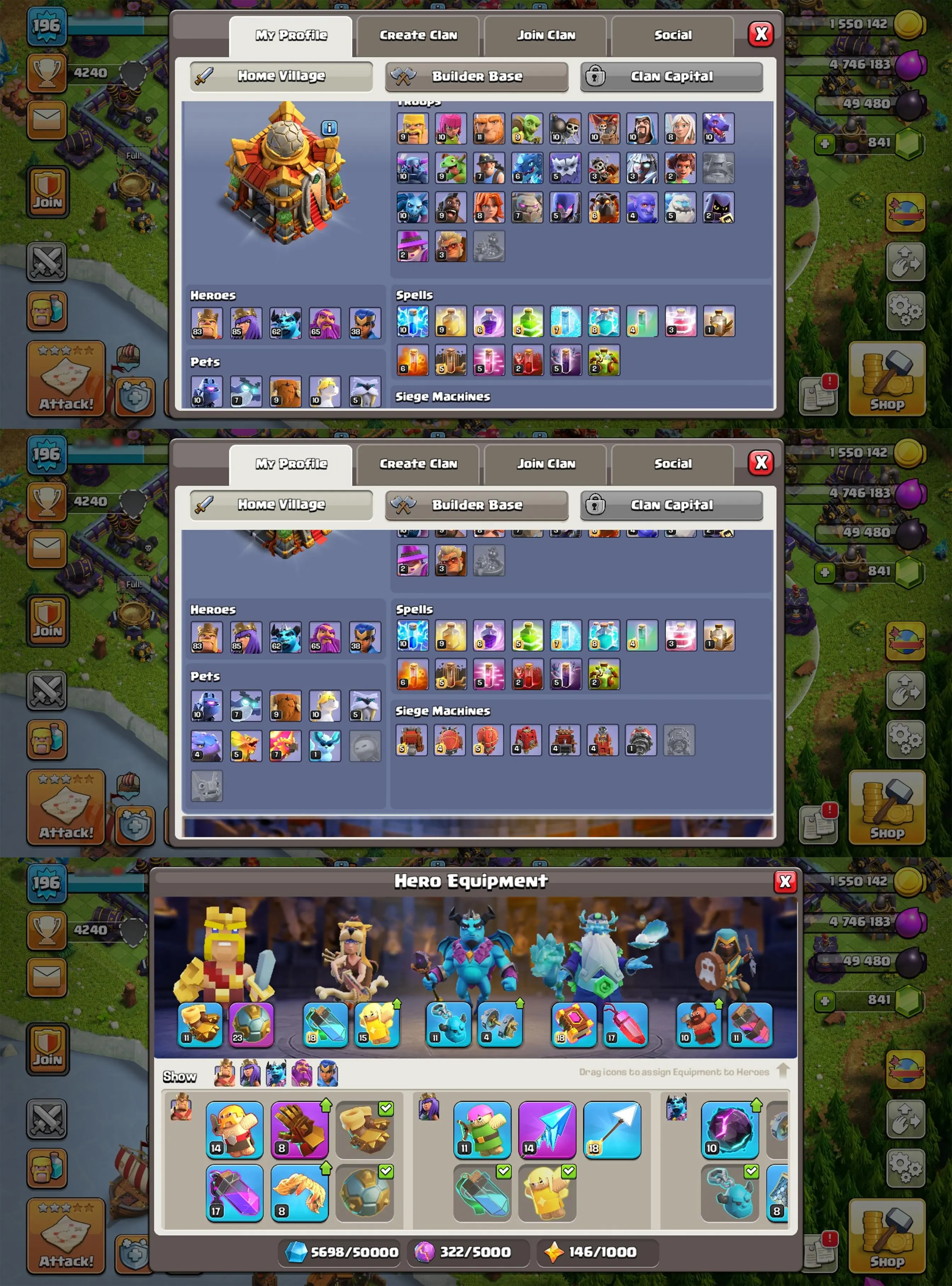 TH16🔥78% Max🔥 Lv196 🔥EQUIPMENTS 50% MAX🔥2HeroMax