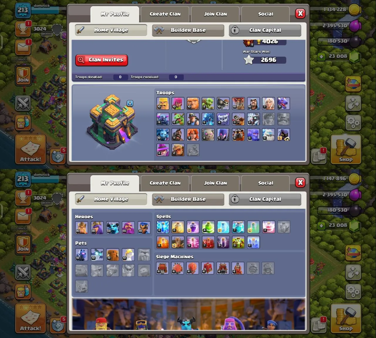 🔥TOP RAREST 23K GEMS AND 2.5K LEAGUE MEDEL TH14 MAX⚡NOTHING LEFT FOR UPGRADE⚡11 EPIC EQUIPMENT UNLOCK⚡ALL EQUIPMENT HIGH LEVEL⚡FREE RENAME⚡PAINTER HEROS SET⚡INSTANT DELIVERY⚡