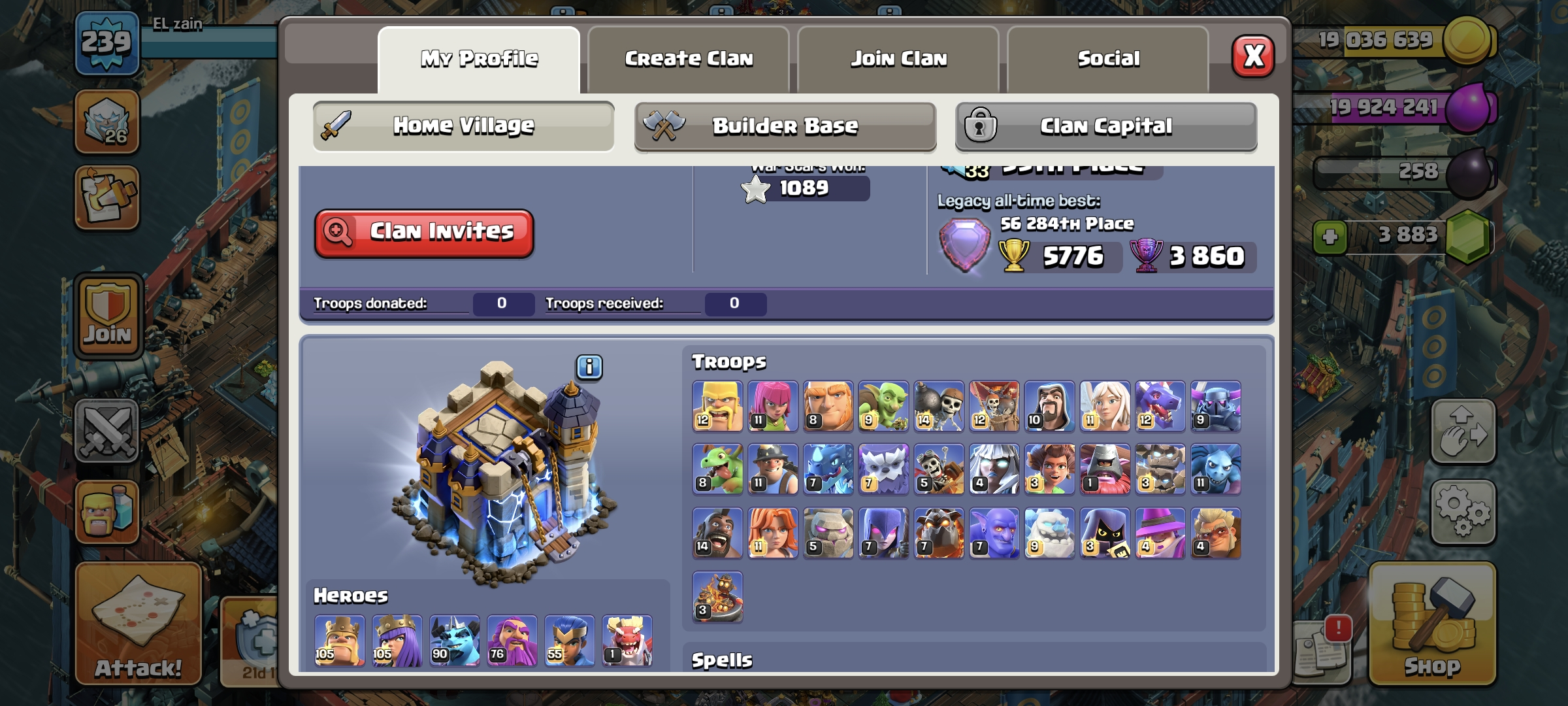 Town Hall 18 Near Max 🥶 Skill Epic Max 6 🥶 Builder hall max 🥶 Change name on 🥶 Guaranteed Account 🥶