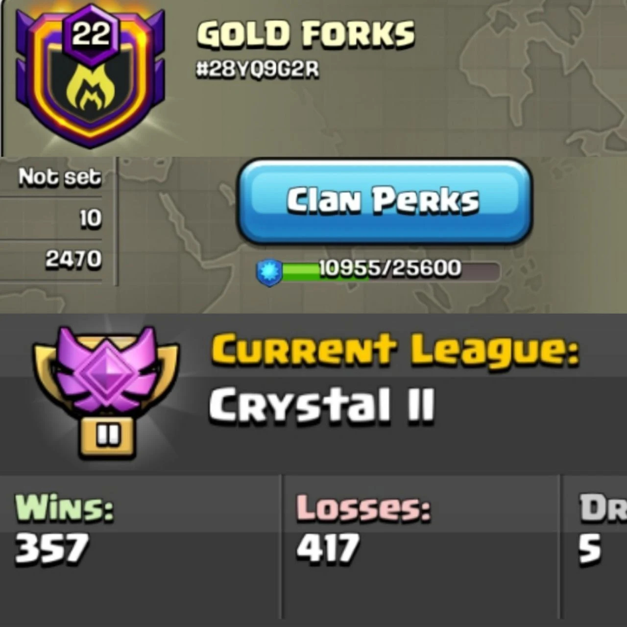 🔥Crystal 2🏆| Gold Forks | 💥 LVL- 22 | ☠️ Warlog 275-501| CC:-10⚡