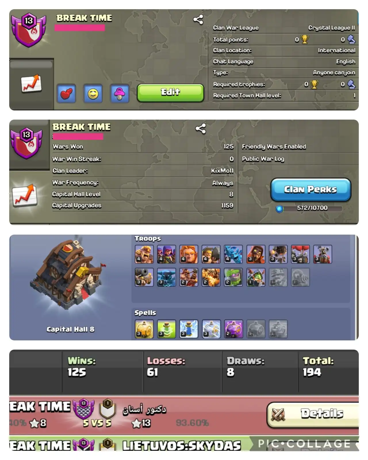 💥[CRYSTAL 2 + CC 8] 😉NAME : BREAK TIME ⚡️LEVEL : 13 💢WARLOG W-L-D: 125-61-8 🫡