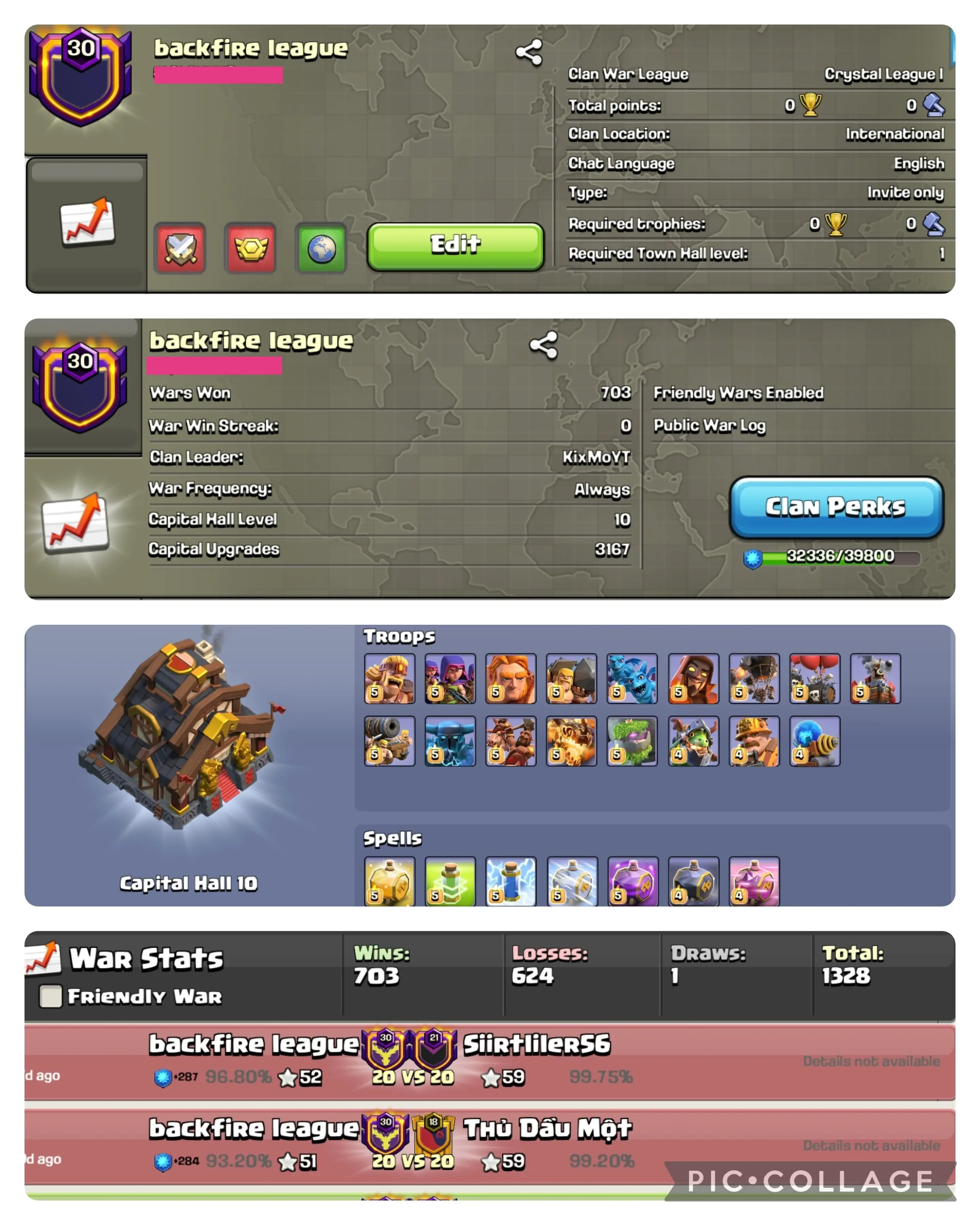 💀[CRYSTAL 1 + CC 10] 🌹 LEVEL : 30.8 😈 NAME : BACKFIRE LEAUGE 😮💨 WARLOG W-L-D : 703-624-1 ⚡️