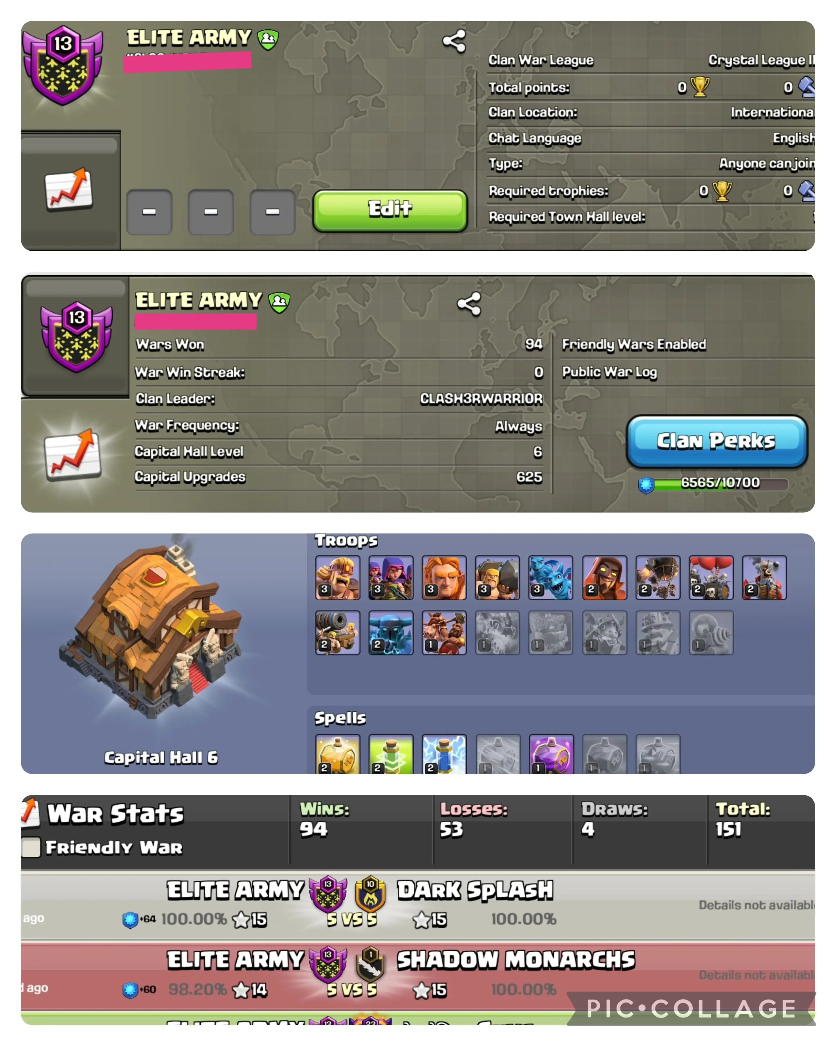😈[CRYSTAL 2] 😉 NAME : ELITE ARMY 😊 LEVEL : 13.7 😏 WARLOG W-L-D 94-53-4 ☠️