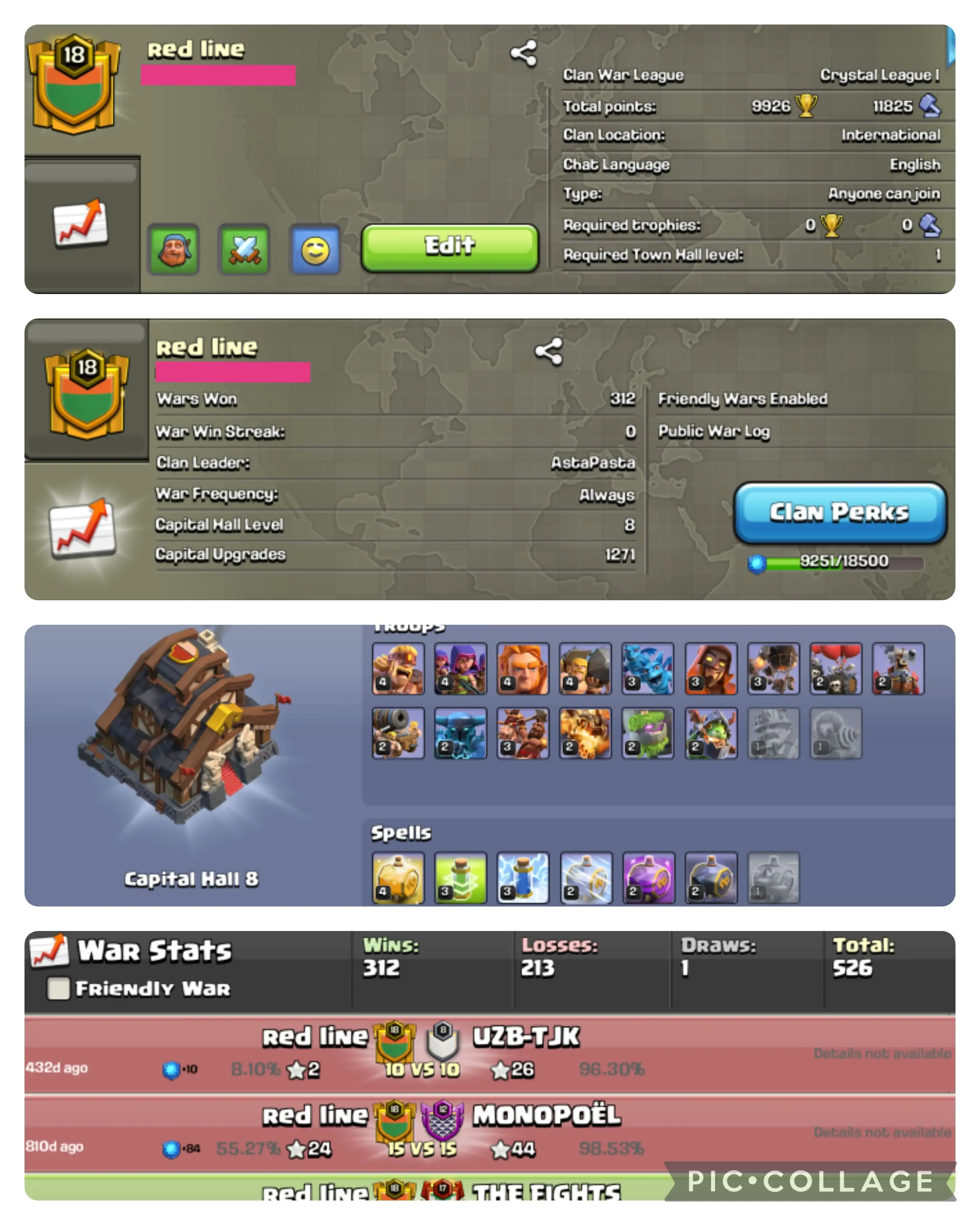 😀[CRYSTAL 1 + CC 8] ☠️ NAME : RED LINE 😗 LEVEL : 18.5 ⚡️ WARLOG W-L-D : 312-213-1 🤑