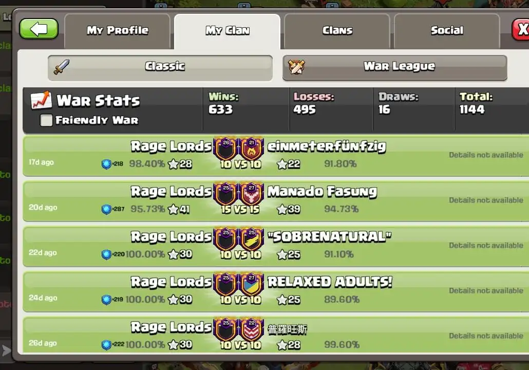 Level 26 Rage lords 🔥 CC 10 ENGLISH name Clan Cheap available Instant ‼️ 633 war wins 🔥