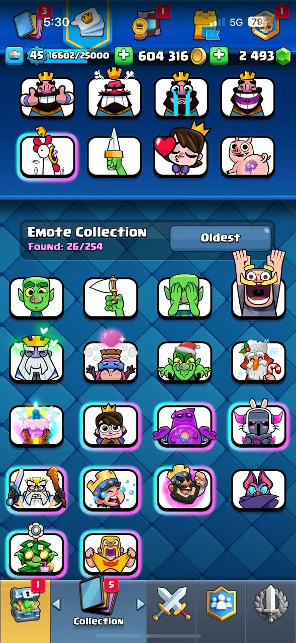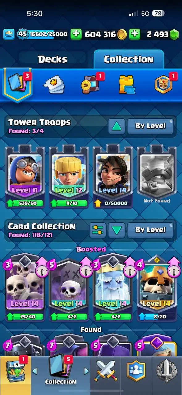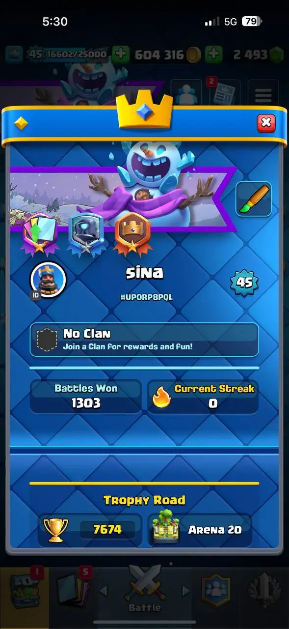 0p 💎 GEMS 2493 🔥 MAX 14 ⚔️ ARENA 20 💪 3 ELITES ⚡️ 6 EVO 🏆 7674 TROPHIES 🎯 XP45 💥 4 SKINS 😎 26 EMOTES ⚡️ INSTANT