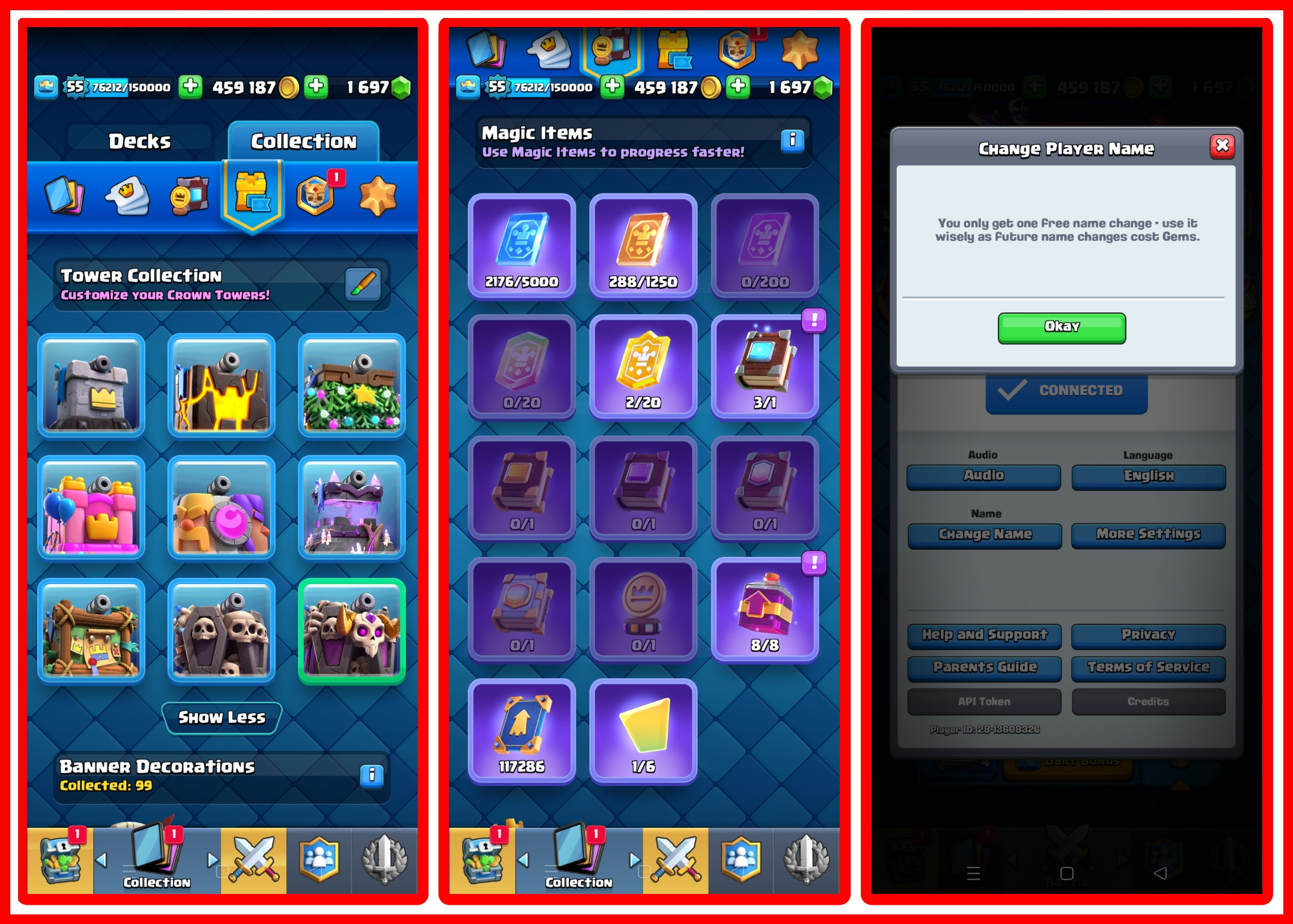 13 EVOLUTION CARDS ๐ 58 MAX CARDS ๐LEVEL 55 ๐ 8287 TROPHIES ๐๐ ARENA LEVEL 21 ๐๐ KT LEVEL 15 ๐คฉ๐ 5 ELITE CARDS ๐ FREE NAME CHANGE ๐โ ๏ธ CHEAP PRICE ๐ธ INSTANT DELIVERY โ๏ธ๐ฏ ANDROID & IOS โ๏ธ๐ค
