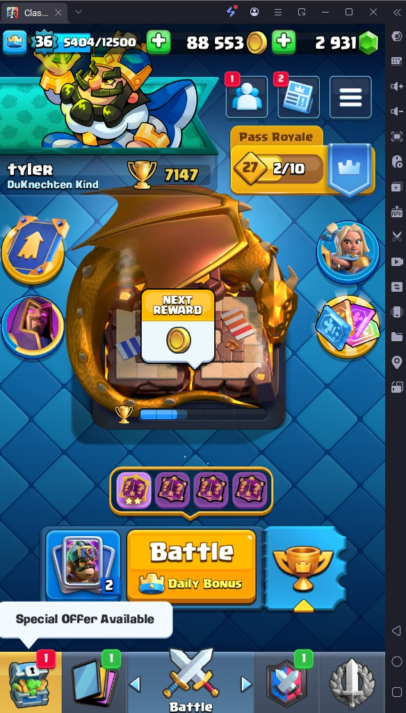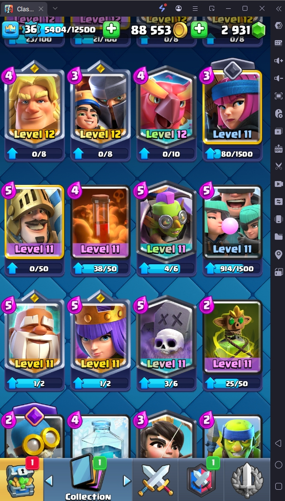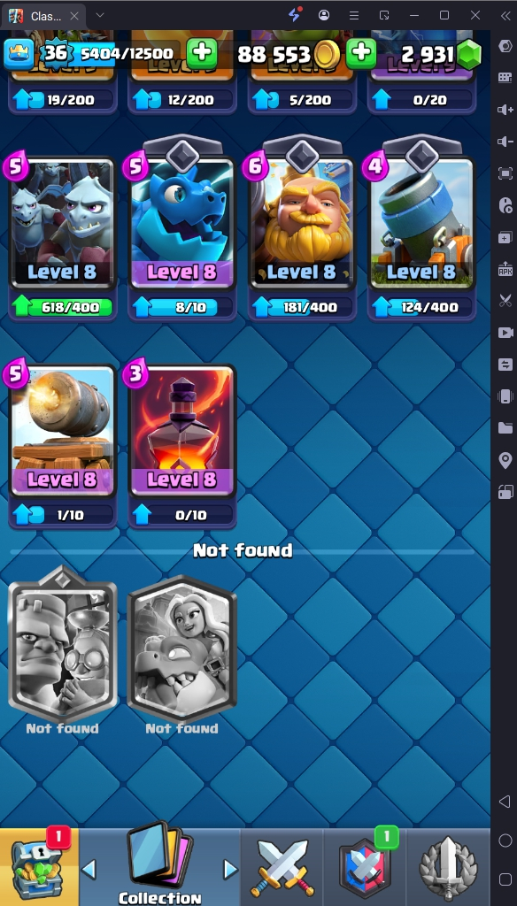 7147 TROPHY 🏆 36 LVL 💯 KT 12 👑 118 CARDS ♦️ 2 MAX CARDS 👑 0 ELITE CARDS 🔮 4 EVO 💯 EMOTE 23 🎭 #C80GUPUPQ ⸱ TAG ACCOUNT ♥️