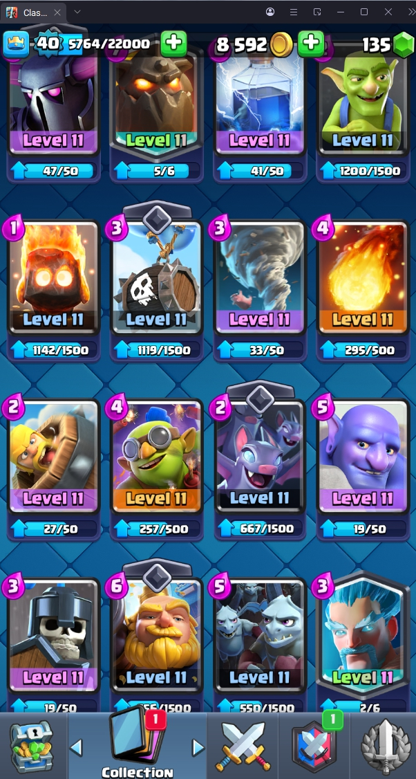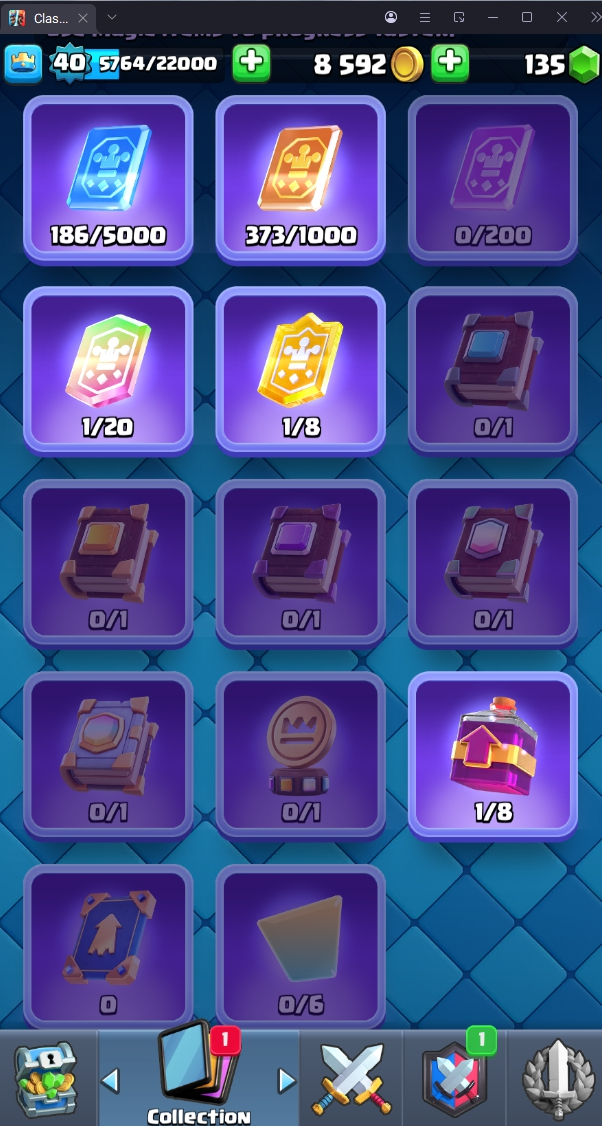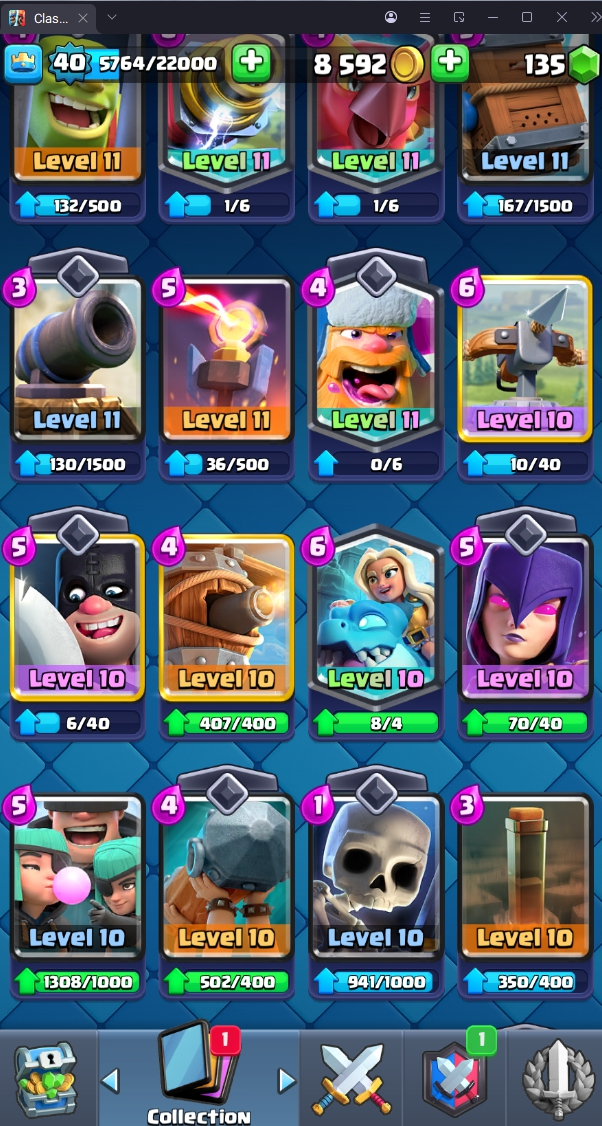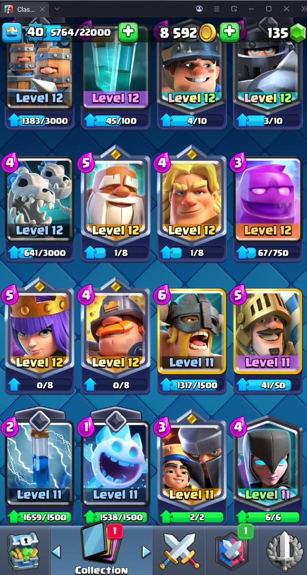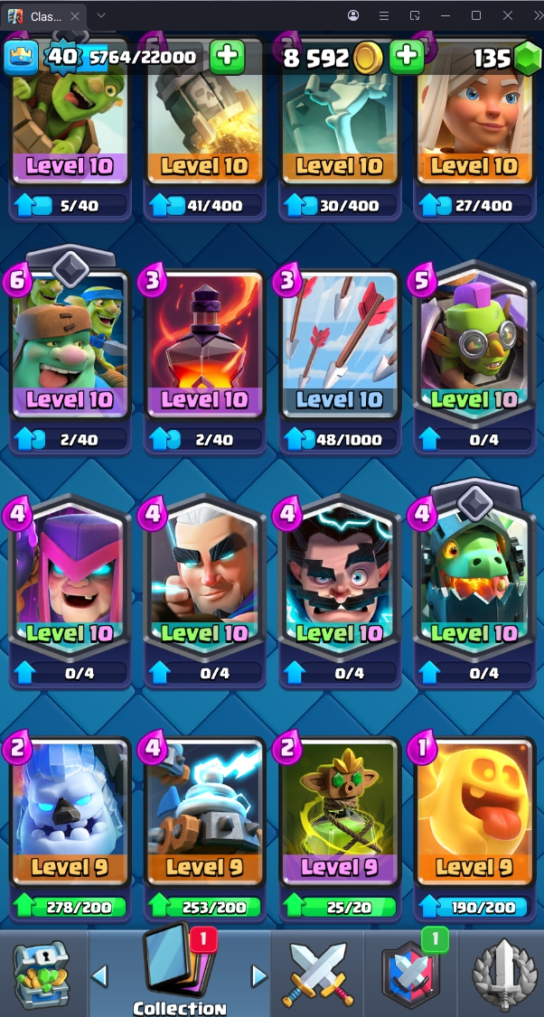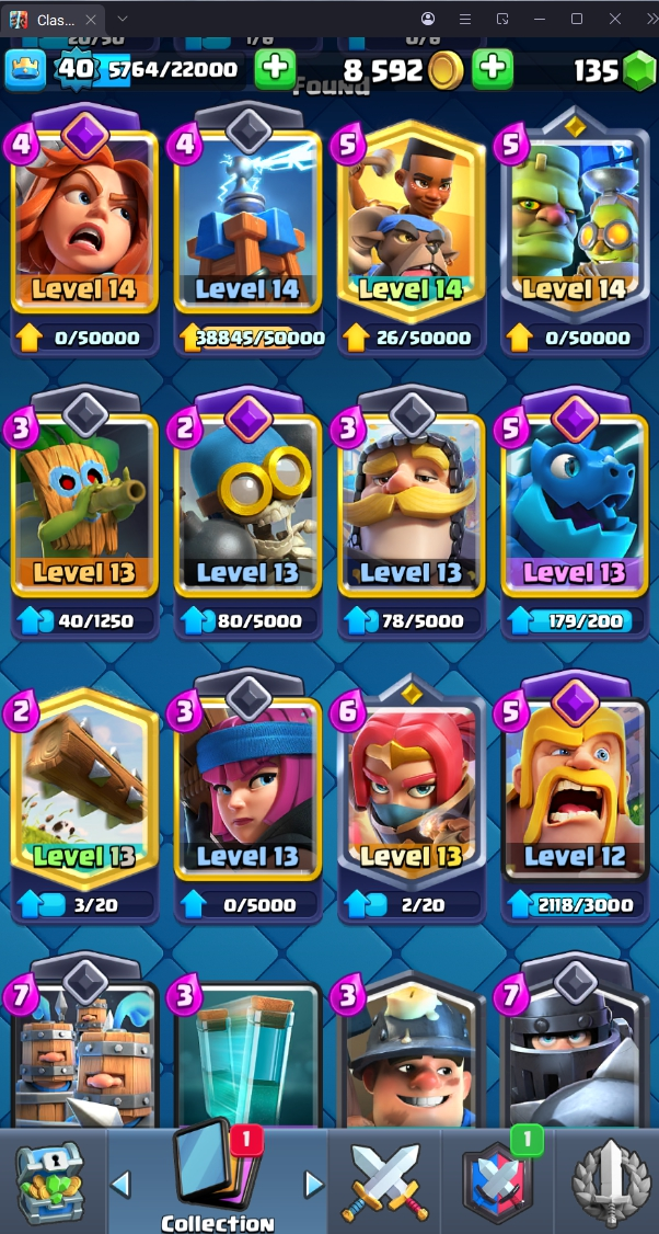 8120 TROPHY 🏆 40 LVL 💯 KT 13 👑 120 CARDS ♦️ 4 MAX CARDS 👑 0 ELITE CARDS 🔮 4 EVO 💯 EMOTE 30 🎭 #UJVQVP9CV ⸱ TAG ACCOUNT ♥️