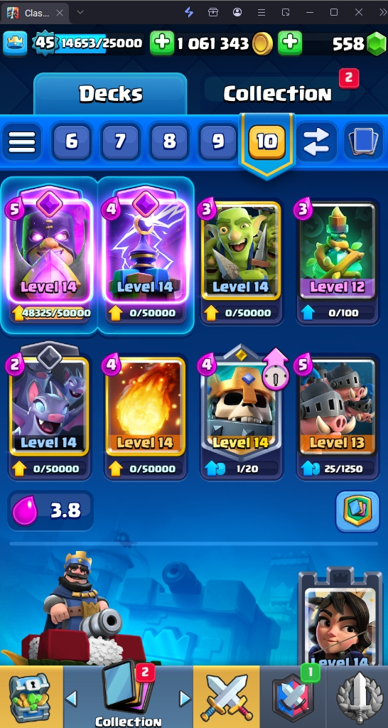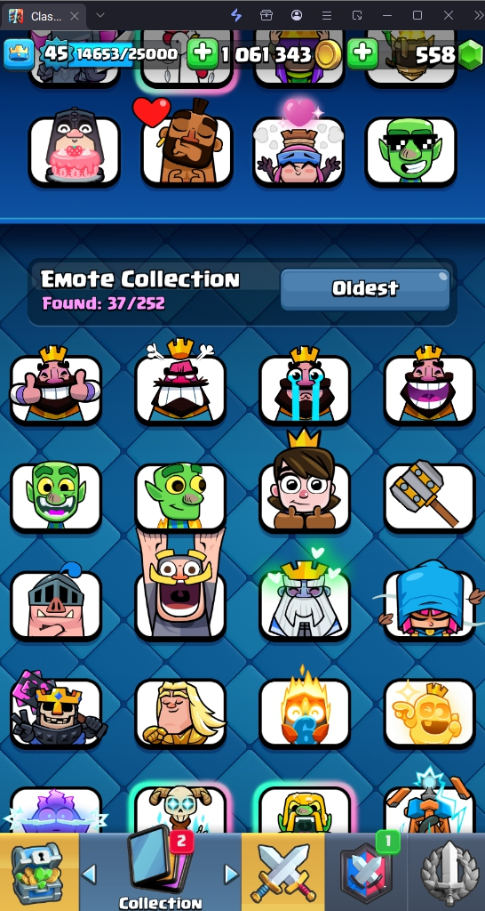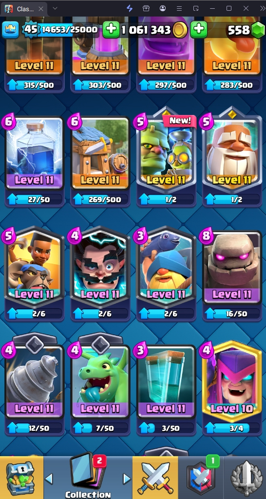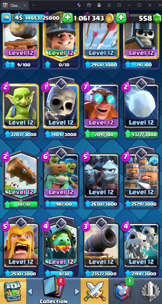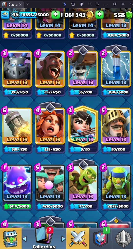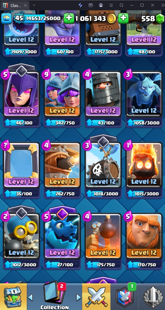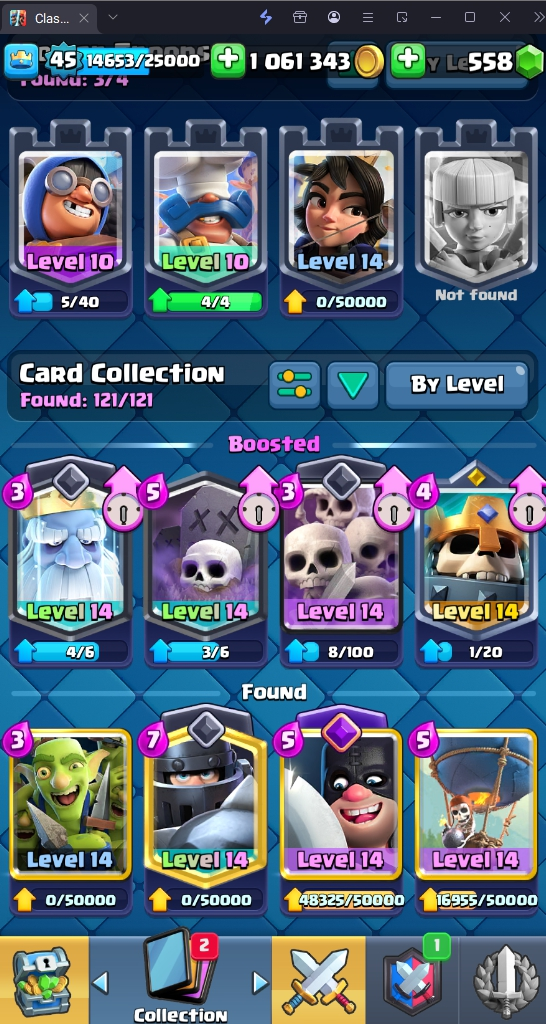 9045 TROPHY 🏆 45 LVL 💯 KT 14 👑 121 CARDS ♦️ 11 MAX CARDS 👑 0 ELITE CARDS 🔮 6 EVO 💯 EMOTE 37 🎭 #LRRYYL90P ⸱ TAG ACCOUNT ♥️