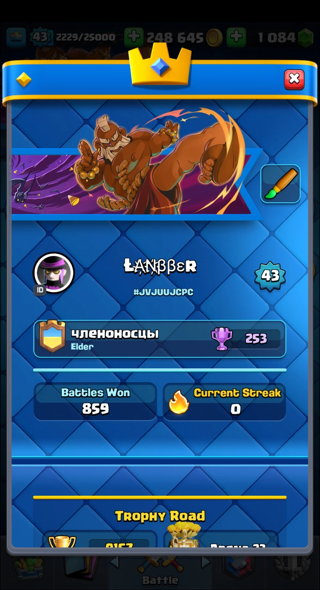 9200 TROPHY ⭐ 43 LVL ⭐ KT 14 ⭐ 120 CARDS ⭐ 8 MAX CARDS ⭐ 2 ELITE CARDS ⭐ 7 EVO ⭐ EMOTE 41 ⭐ #JVJUUJCPC ⸱ TAG ACCOUNT