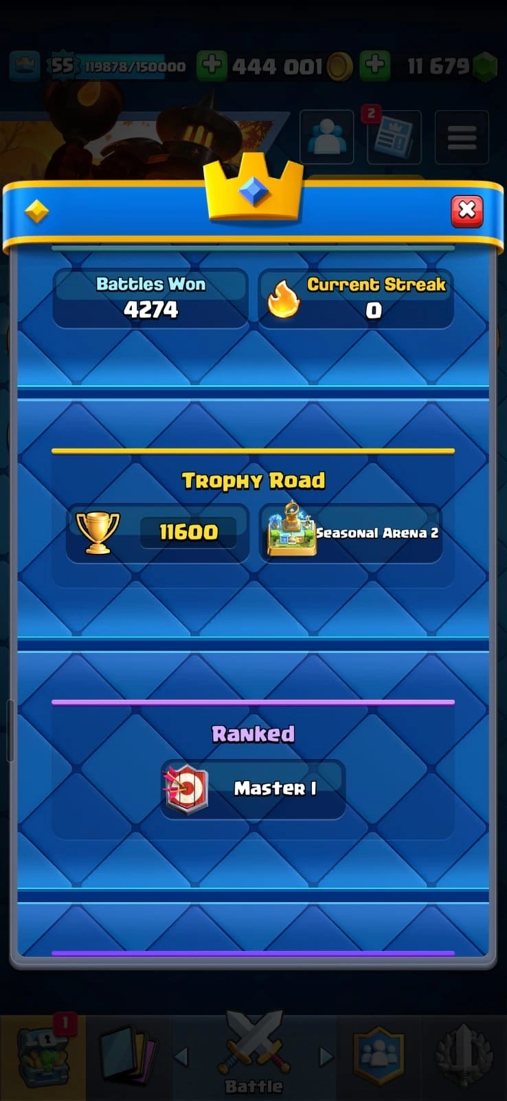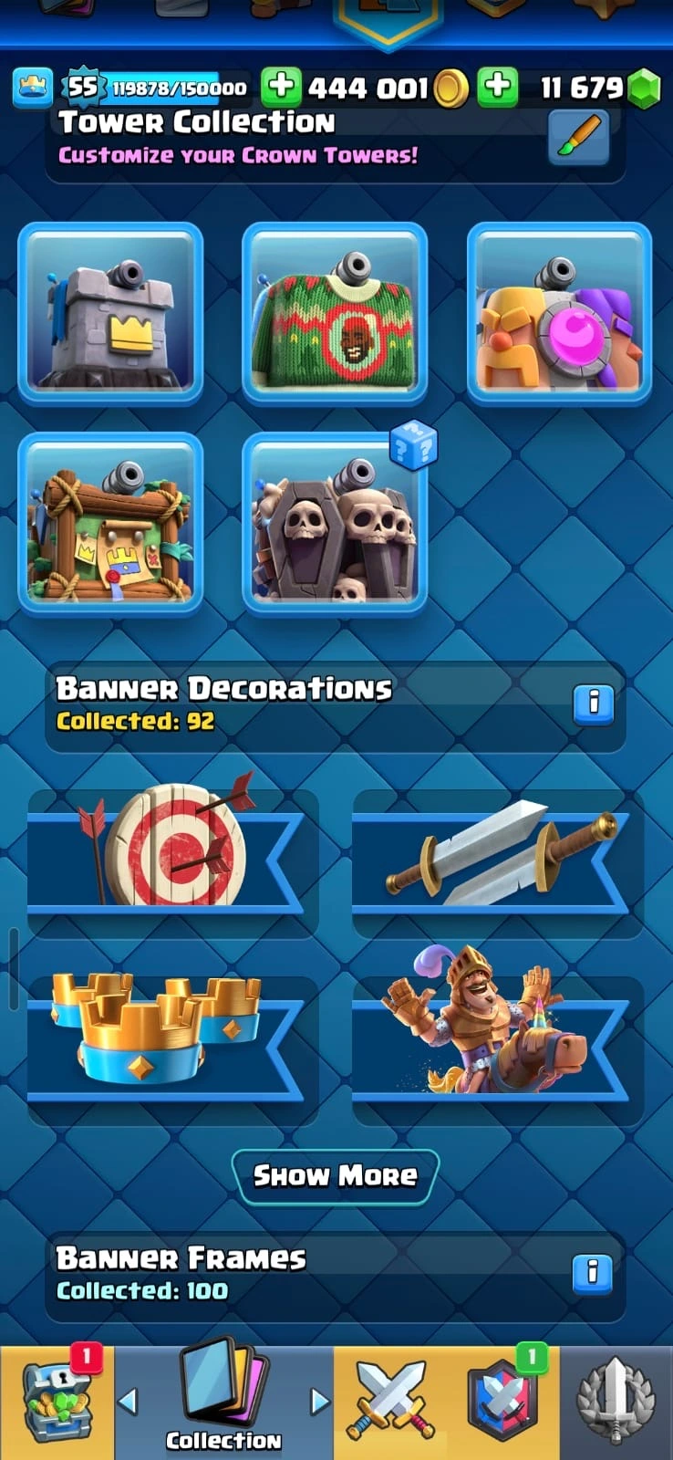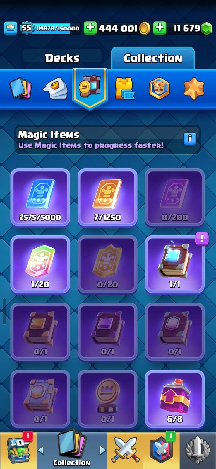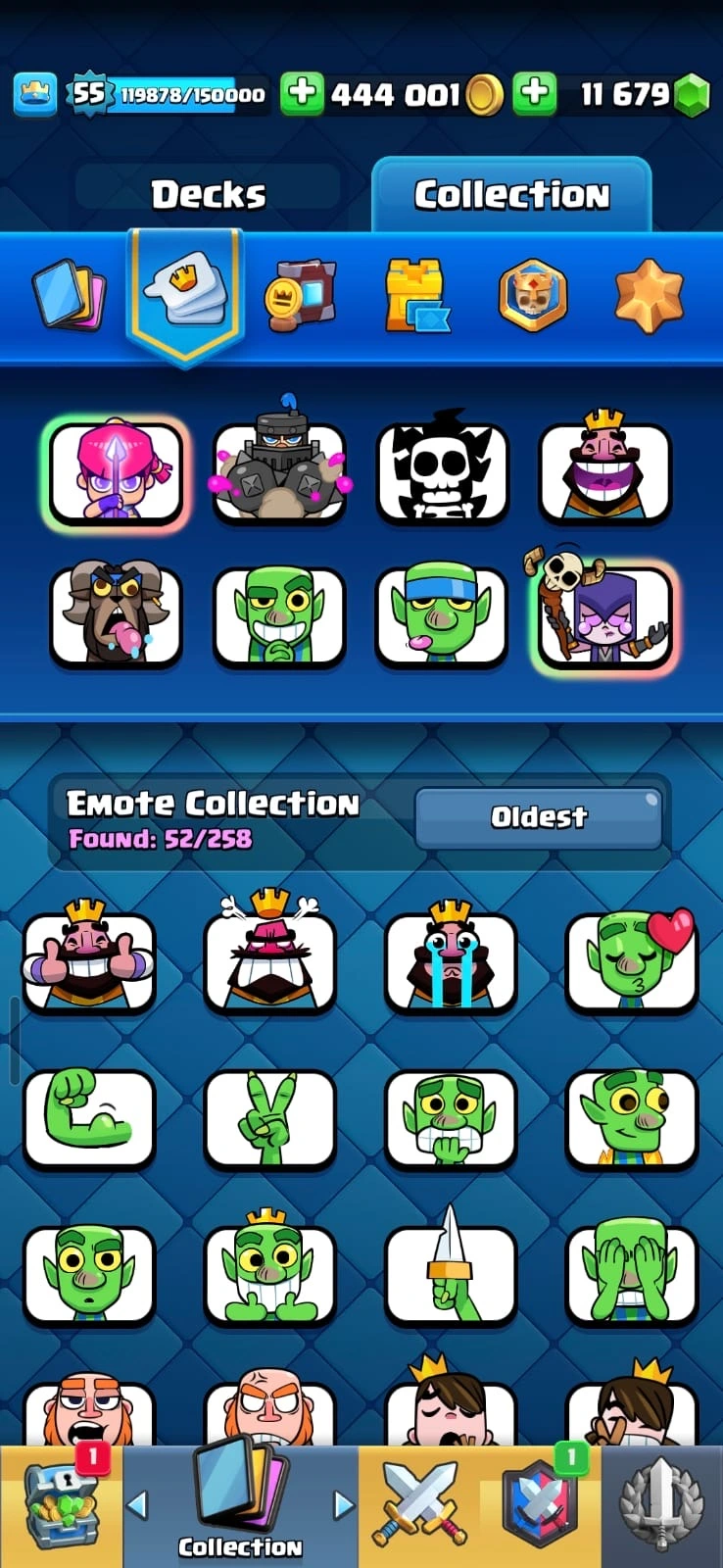 🔥ATB 10K+🔥7 CARDS LVL 15 , 50 LEVEL 14 🔥 14 EVO MAX 🔥 55 LEVEL 🔥 3 YEAR OLD ACCOUNT 🔥 KT 15 🔥400K PLUS COINS AND 11K PLUS GEMS 🔥 SESSIONAL ARENA 2 🔥 OP EMOTES AND BANNERS 🔥OP TOWER SKINS 🔥 KC 24