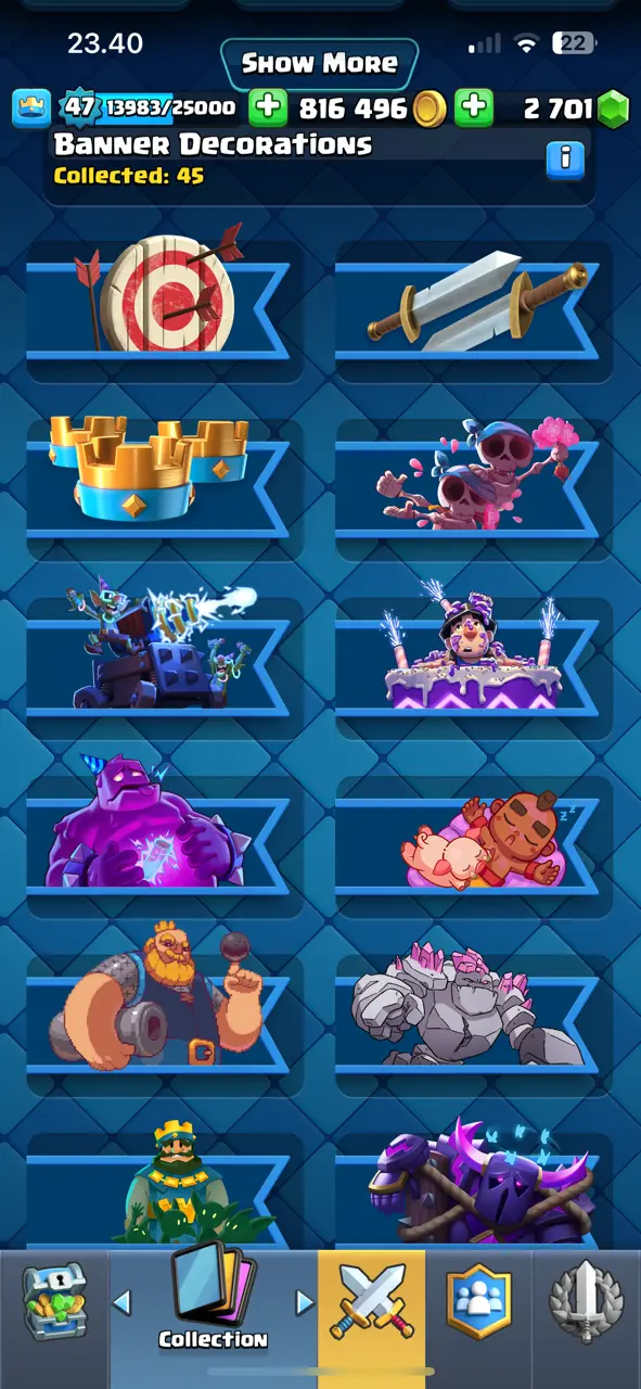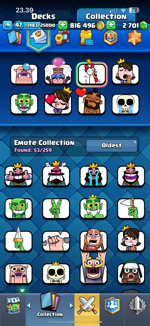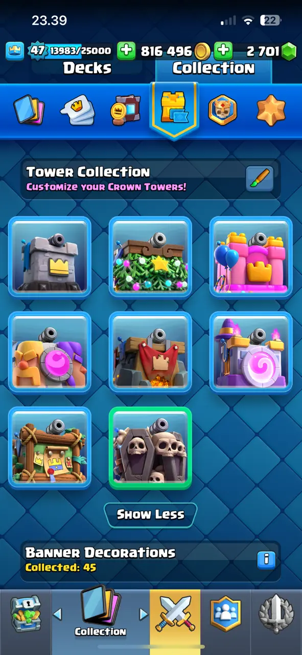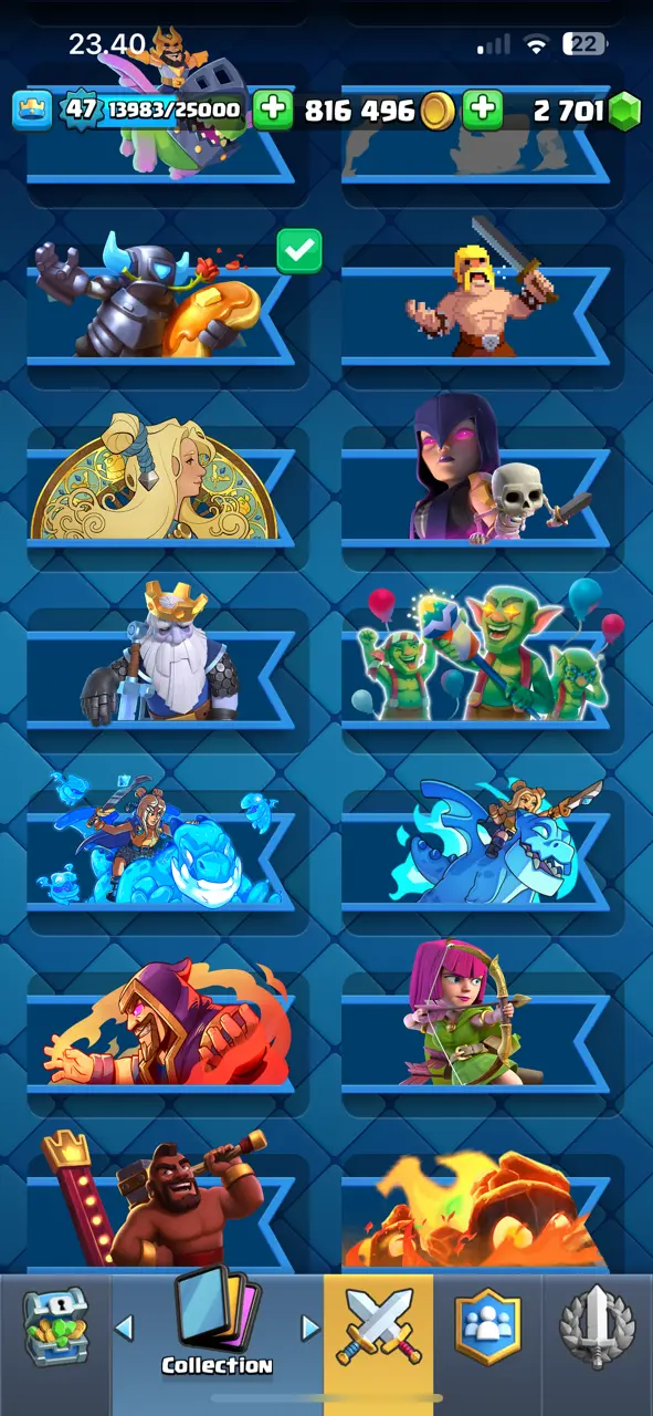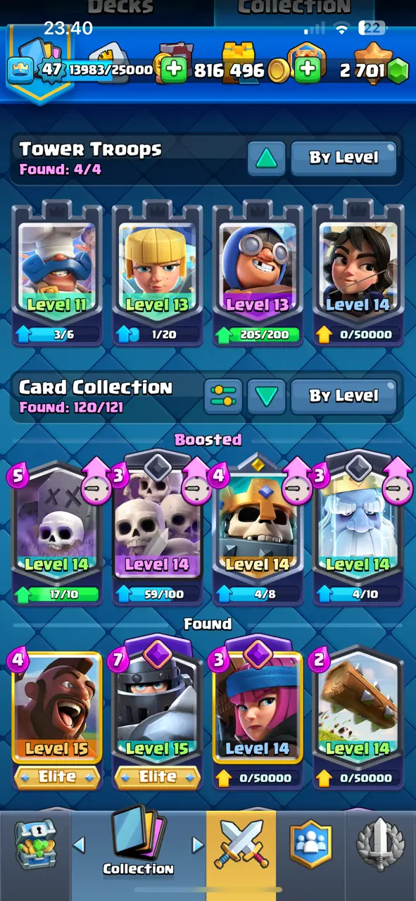 🔥 Awesome 🔥 CR Lv.47 🔥 Free Change Name 🔥 Arena 23 🔥 9161 Trophies 🔥 KT 14 🔥 15 Evo Cards 🔥 14 Max Cards & 2 Elites 🔥 53 Emotes 🔥 8 Tower Skins 🔥 [F2697] 🔥