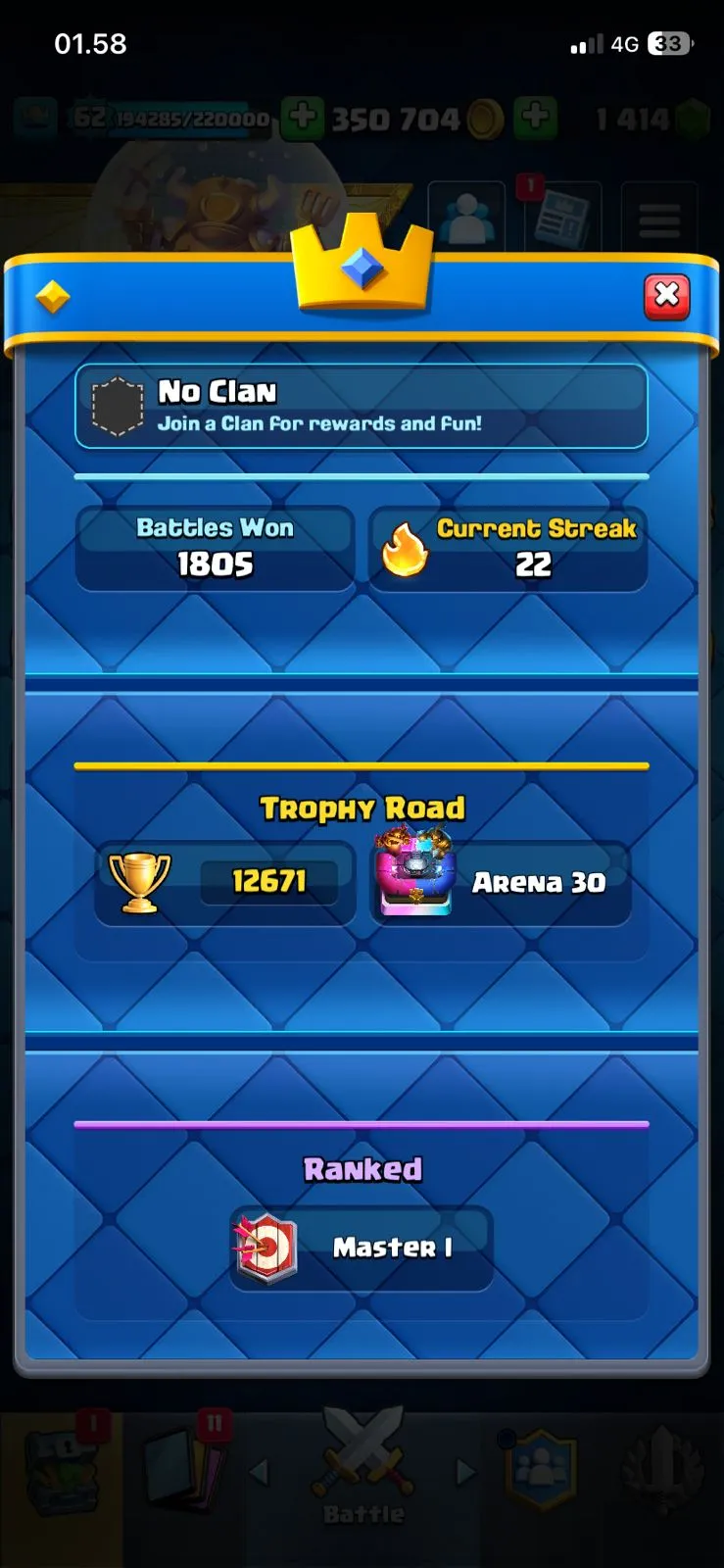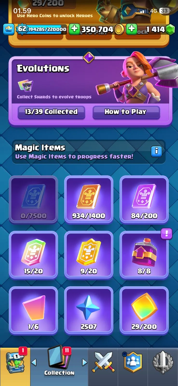 cheapest🔥cr lv 62🔥evo 13🔥arena 30🔥trophy 12671🔥full access account🔥