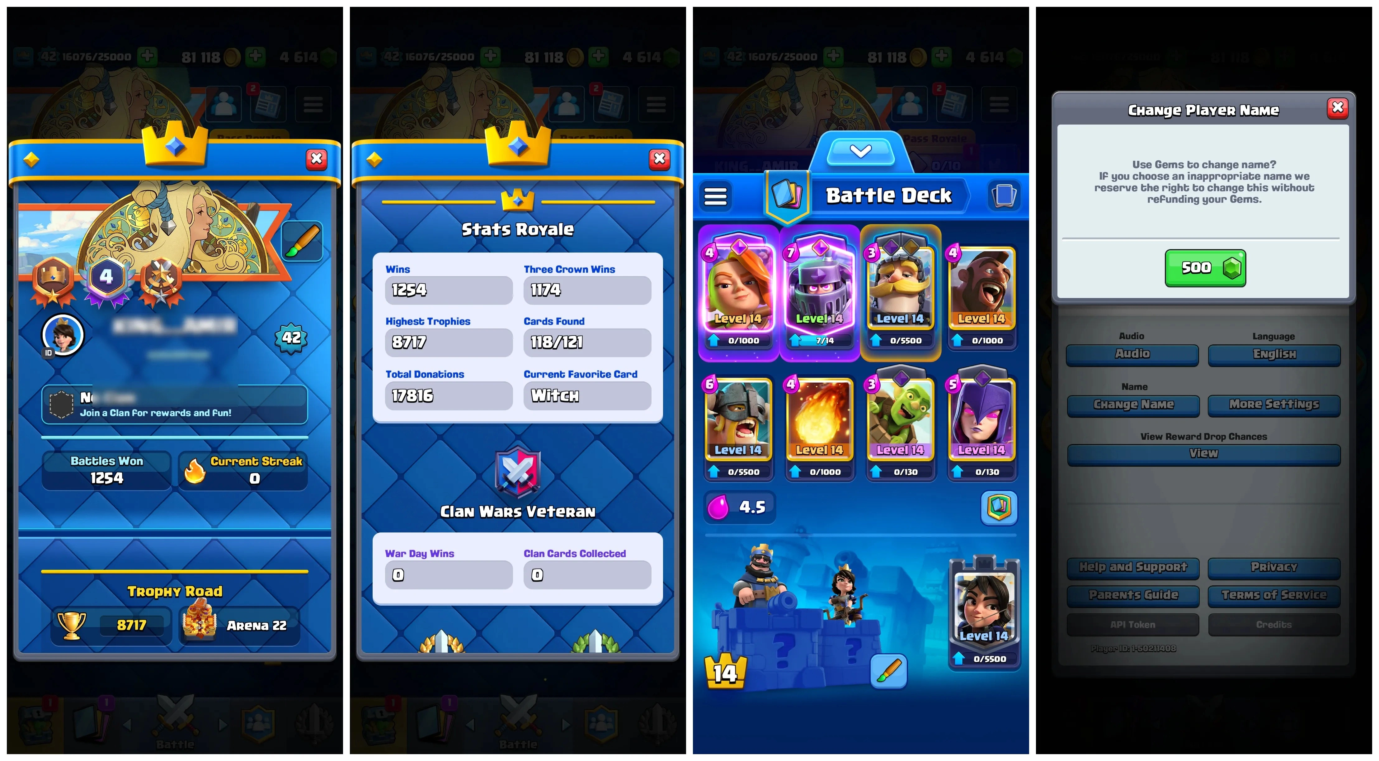 🚀 CR – L42 | 8.7K 🏆 | 4.6K 💎 | Arena 22 | KT 14 | 5⚡Evol | 9 Max !MKG012816