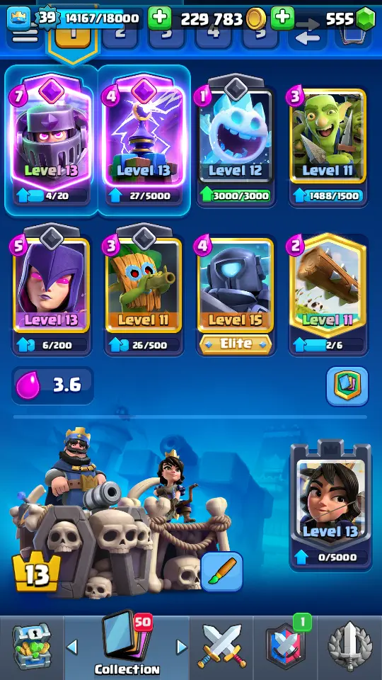 KT 13 🏮 LEVEL 39 🏮 ARENA 20 🏮 7,500 TROPHIES 🏮 117 CARDS 🏮 21 LEGENDARY 🏮 6 EVO 🏮 229K GOLD 🏮 555 GEMS 🏮 ANDROID & iOS🏮FCR25