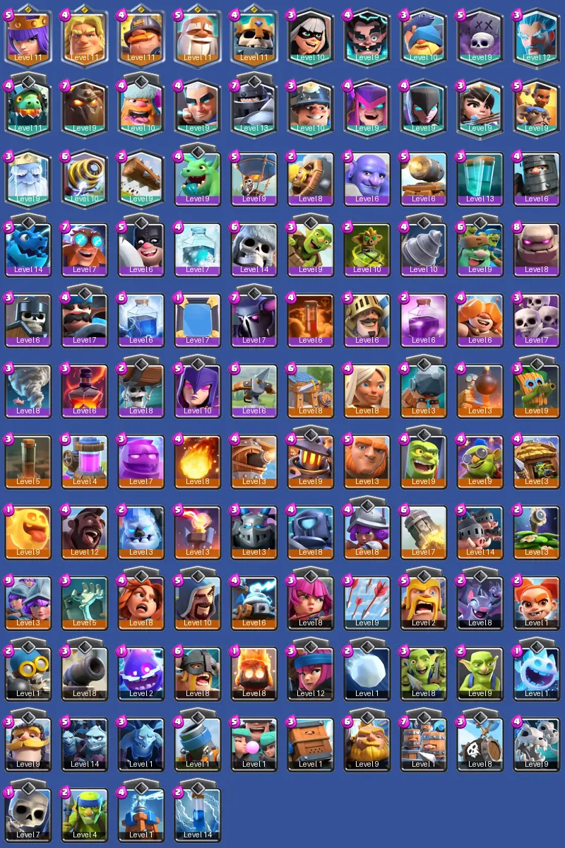 [KT11] | Level 33 | 7129 Trophies | Arena 19 | 114/125 Cards | 1525 Wins | BS Lv.18 | 5 Max | 5 Champions | 18 Legendary | 30 Epic | S4G