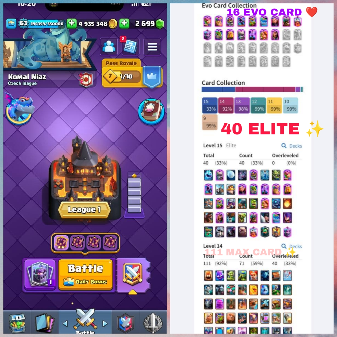 [ LAST SALE] 🔥 CLASH ROYAL 🔥 63 EXP 🔥 KT 15 🔥 ARENA 24🔥 40 ELITE CARD 🔥 16 EVOLUTION CARD 🔥 111 MAX CARD 🔥 4.9M GOLD 🔥 2 RULER[ 3,3 ] 🔥 148 EMOTES 🔥 MANY PRIMIUM EMOTES 🔥 15 TOWER SKINS 🔥 CHEAPEST IN MARKET 🔥