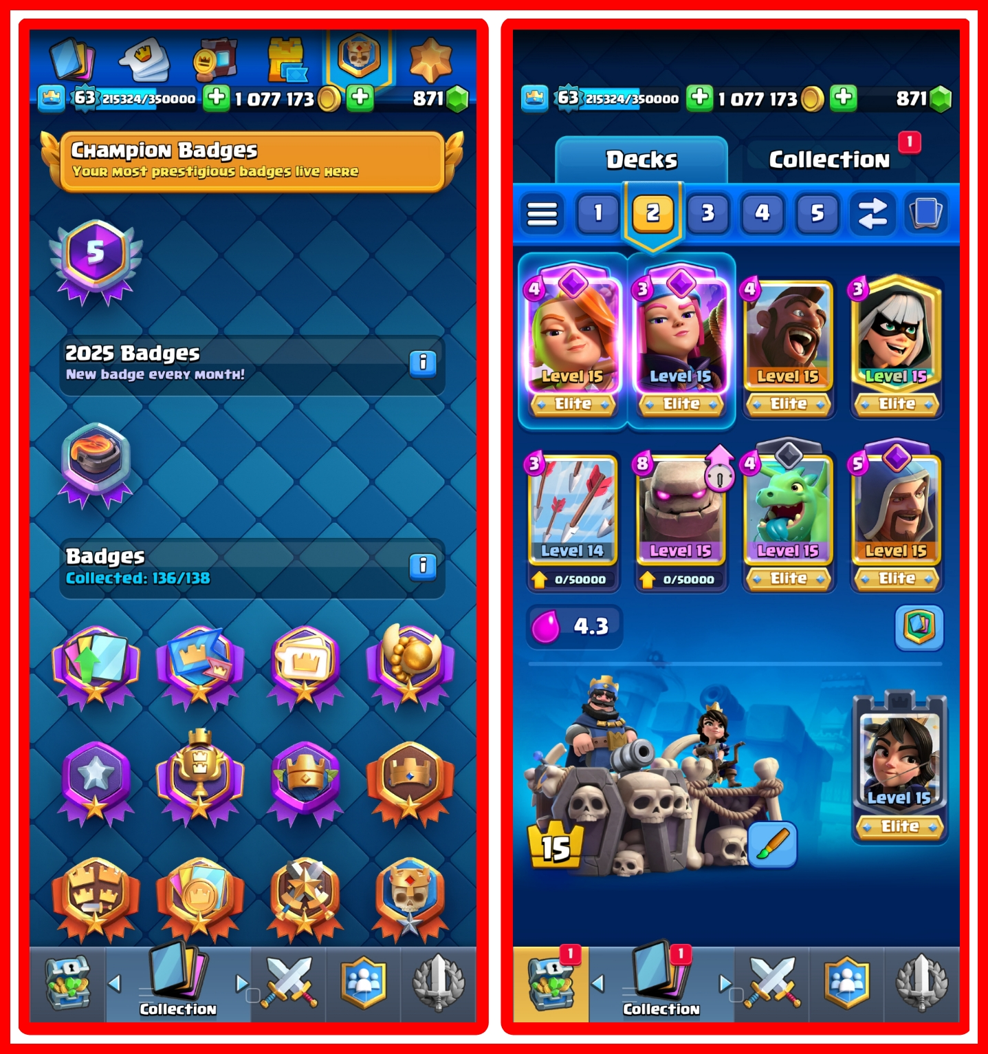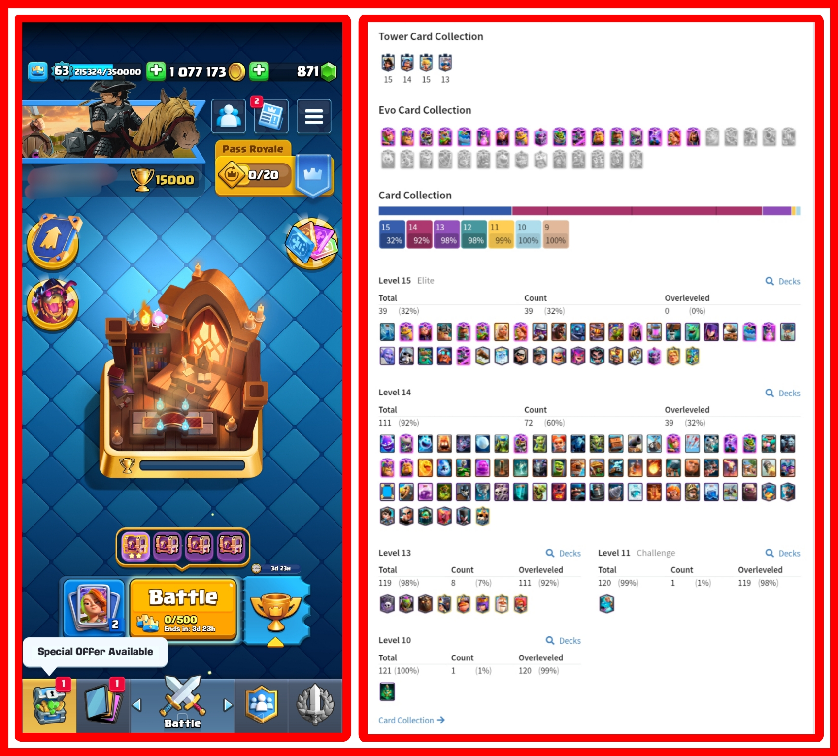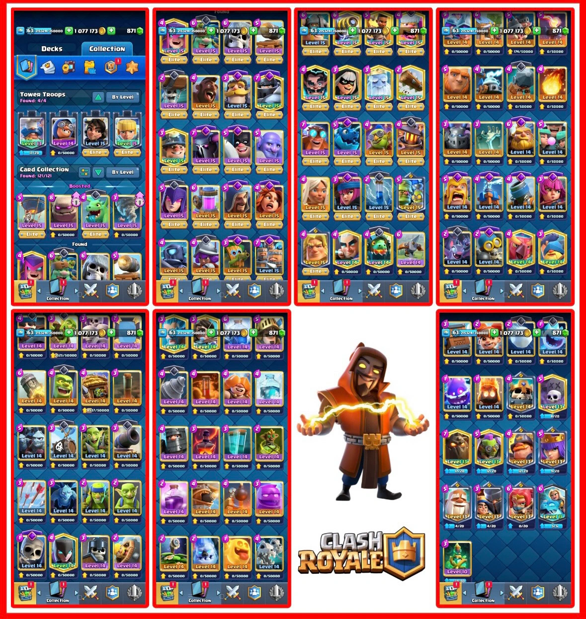 [MAX DEAL]✨OLD & STACKED EMOTES 💫17 EVOLUTION CARDS👀 111 MAX CARDS👀LEVEL 63🚀15000 TROPHIES🏆ARENA LEVEL 25😍KT LEVEL 15 ☠️39 ELITE CARDS✨1M GOLD✨FREE NAME CHANGE 💎CHEAP PRICE 💸 INSTANT DELIVERY ☑️ANDROID & IOS ☑️