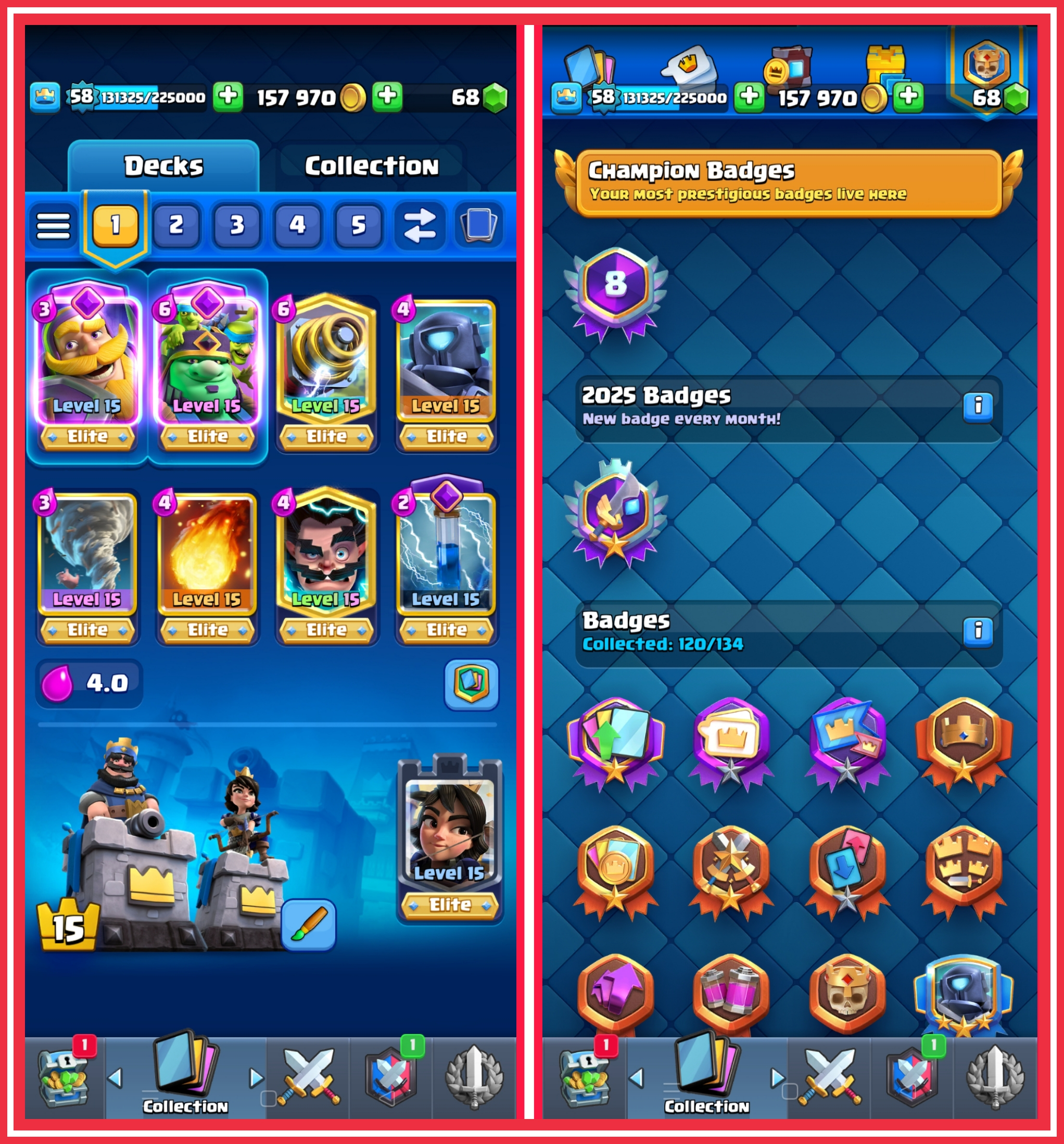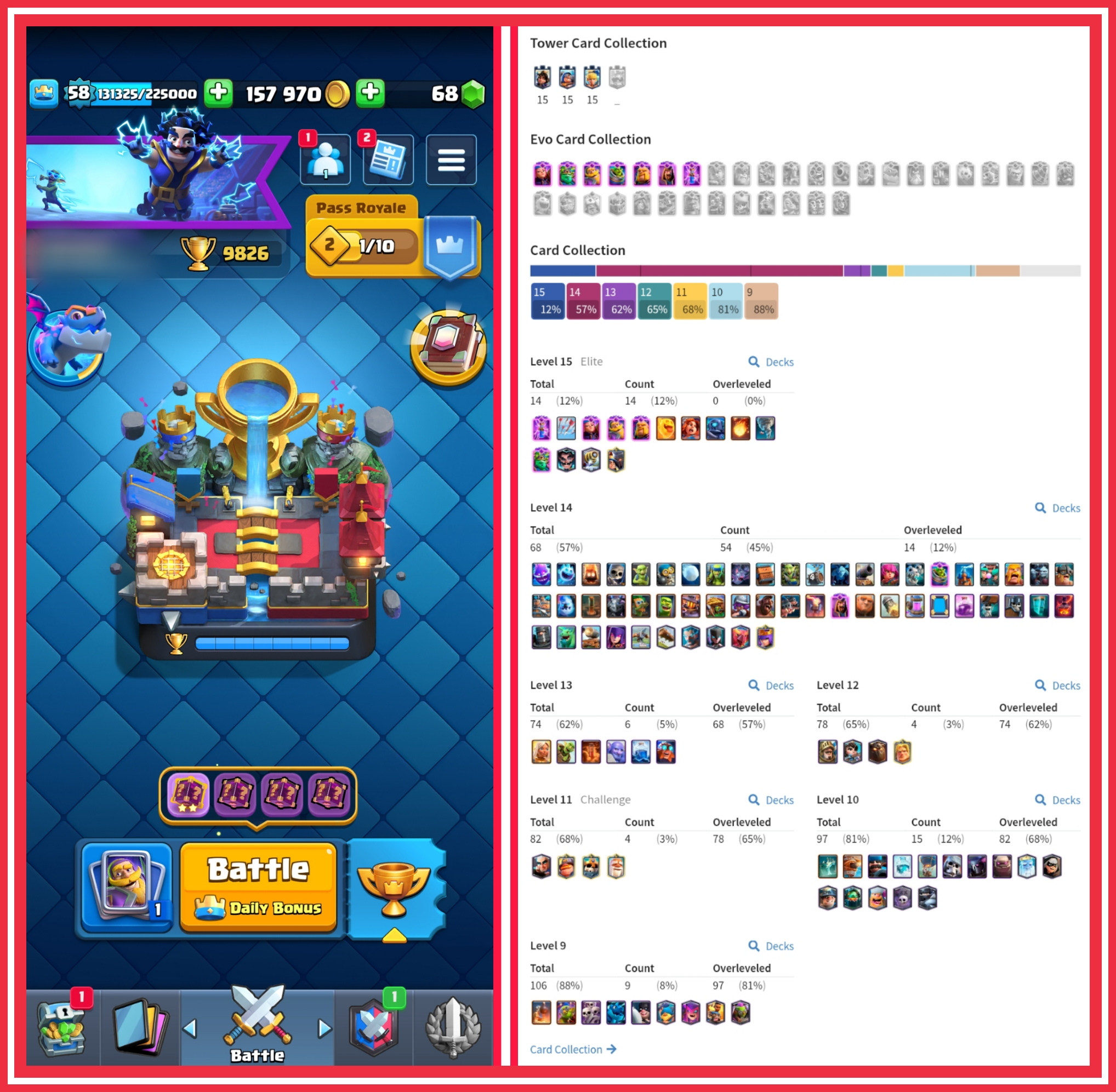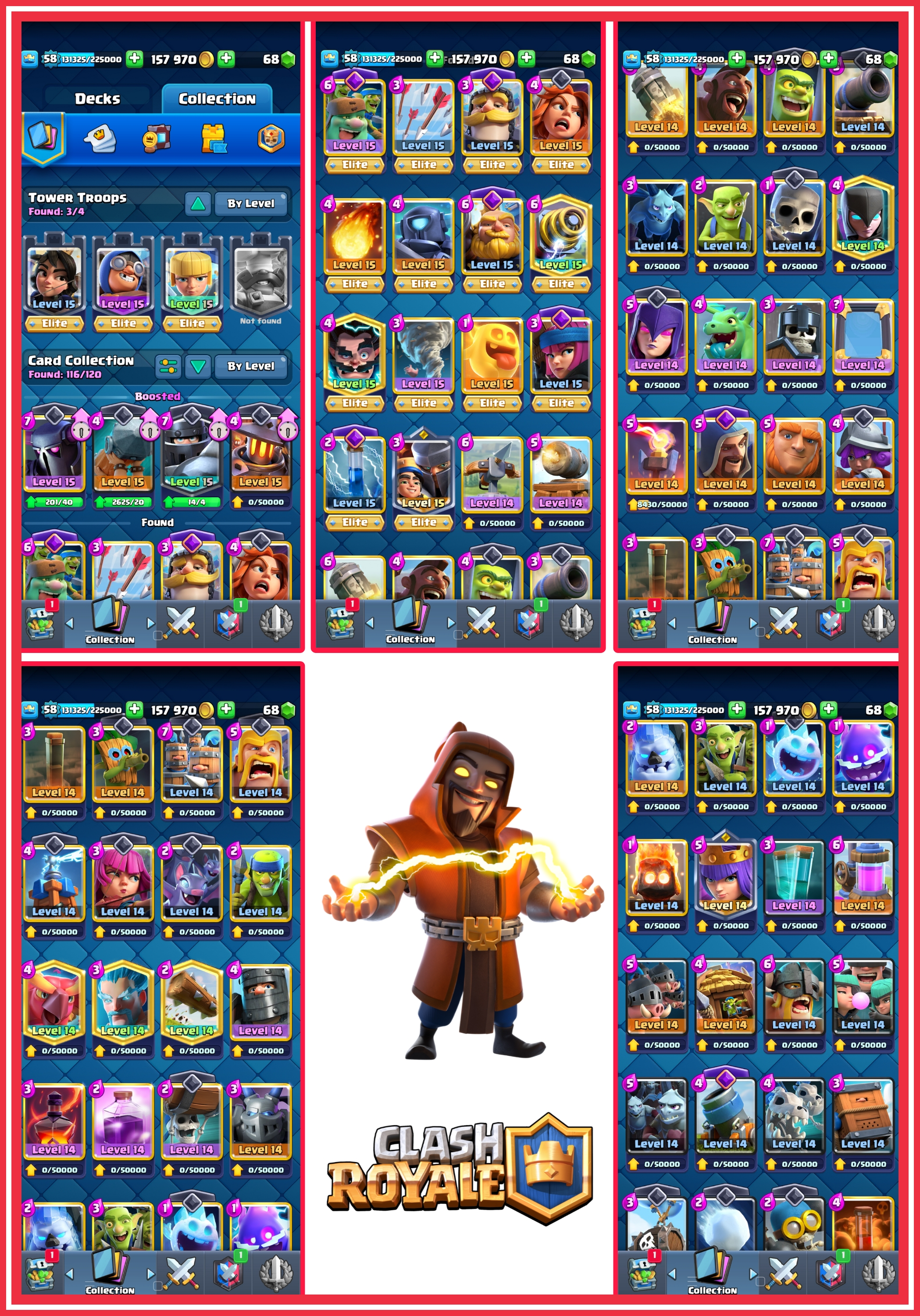 [PREMIUM ACCOUNT] 68 MAX CARDS ☘️LEVEL 58 🚀😍 10K TROPHIES 🏆 ARENA LEVEL 24 😍 KT LEVEL 15 ☠️ 7 EVOLUTION CARDS 🤩 14 ELITE CARDS 😍🎁 CHEAP PRICE 💸 INSTANT DELIVERY ☑️💯 ANDROID & IOS ☑️🤝