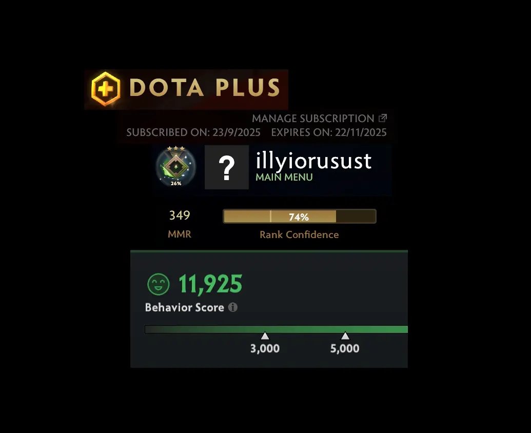 Herald 3 (26%) 🔥 349 MMR + 11925 Behavior 🔥 DOTA PLUS🔥