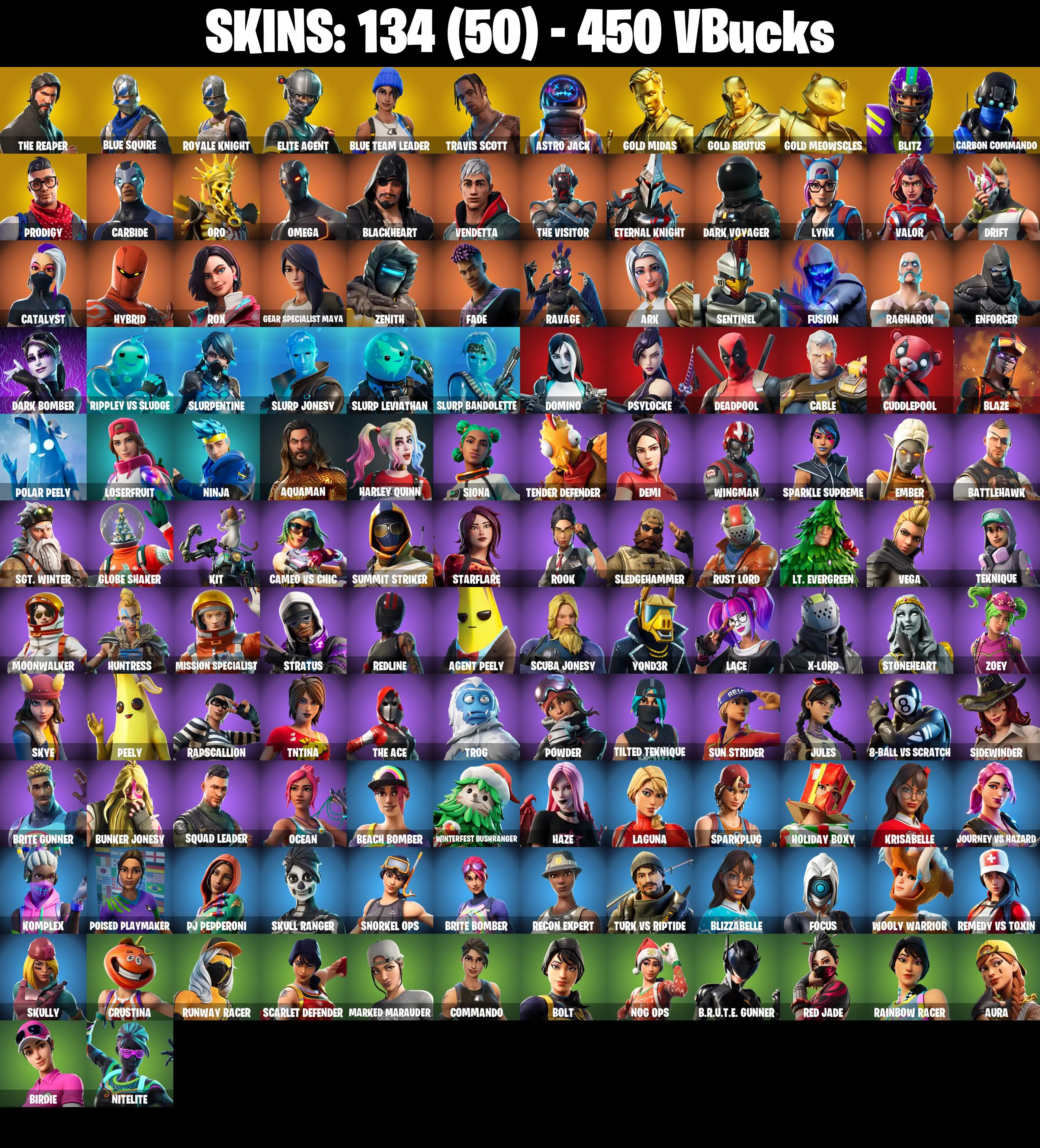 134 SKINS ✨ Travis Scott ✨ The Reaper ✨ Blue Squire ✨ Royale Knight ✨ Elite Agent ✨ Blue Team Leader ✨ Astro Jack ✨ 450 VB (PC/XBOX) PARENTAL CONTROL